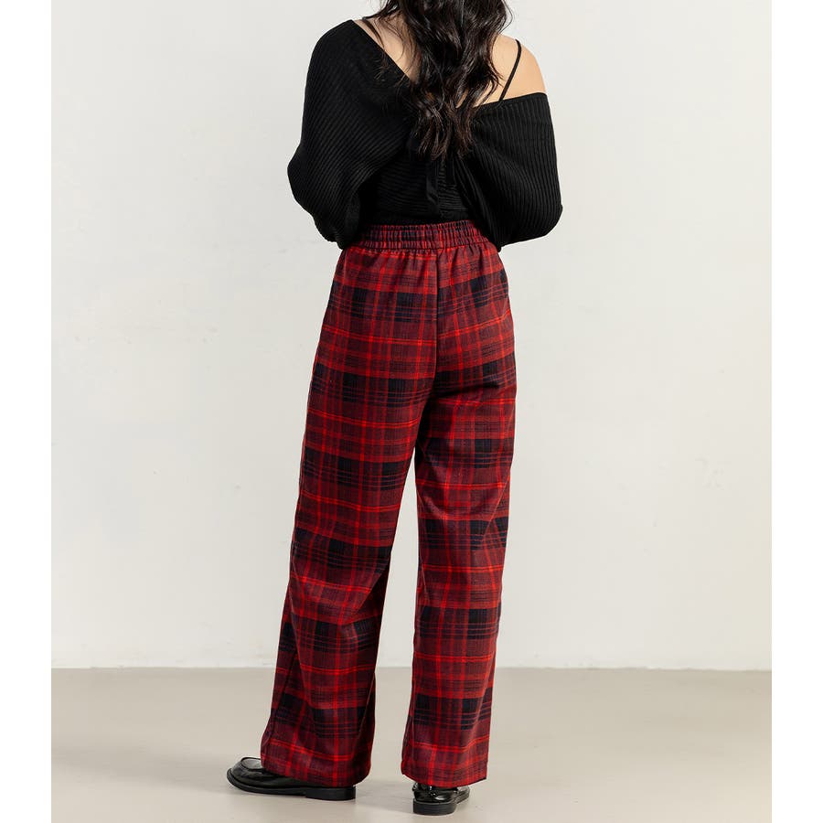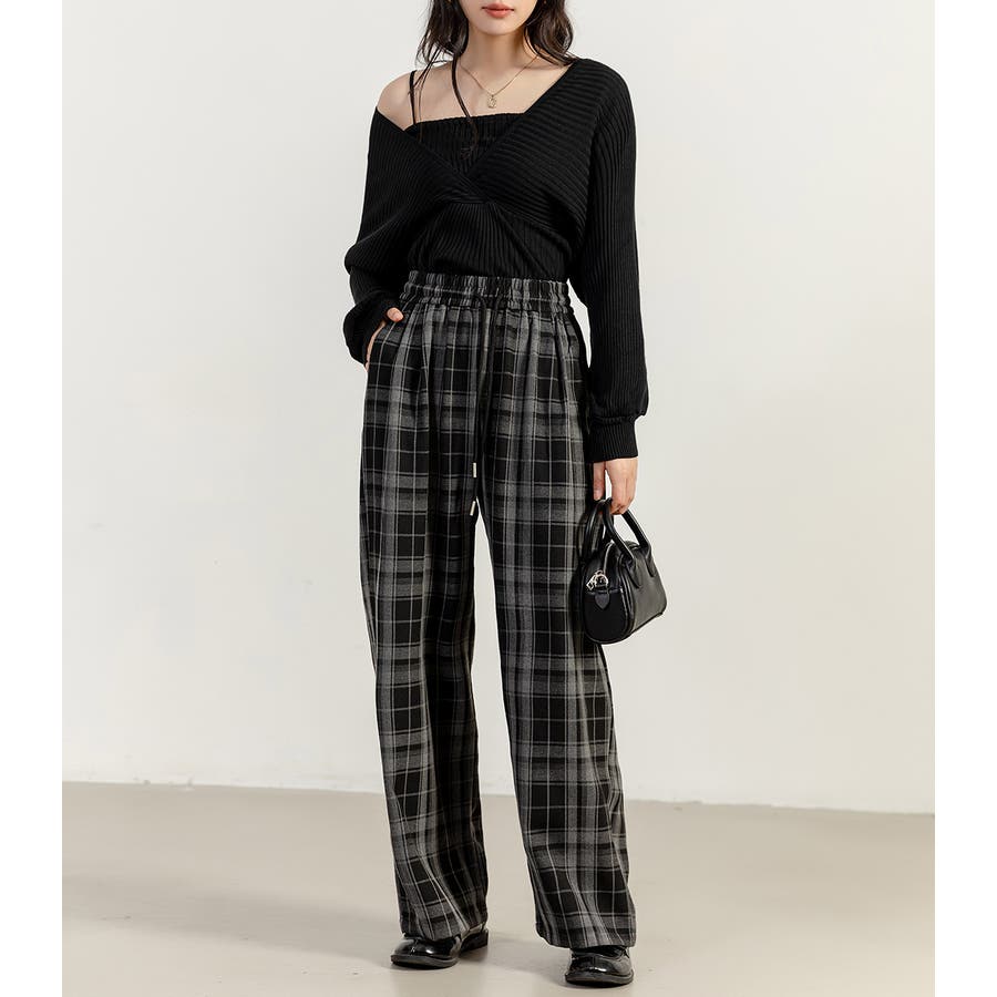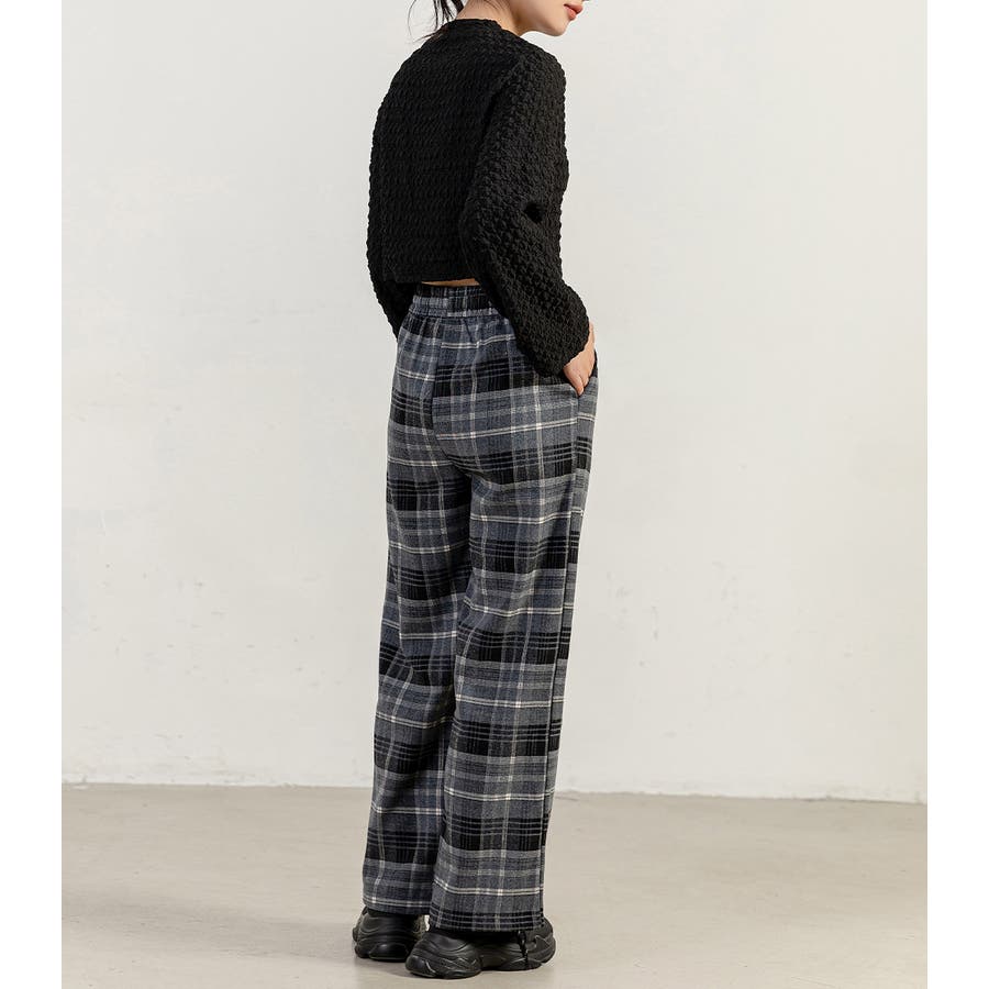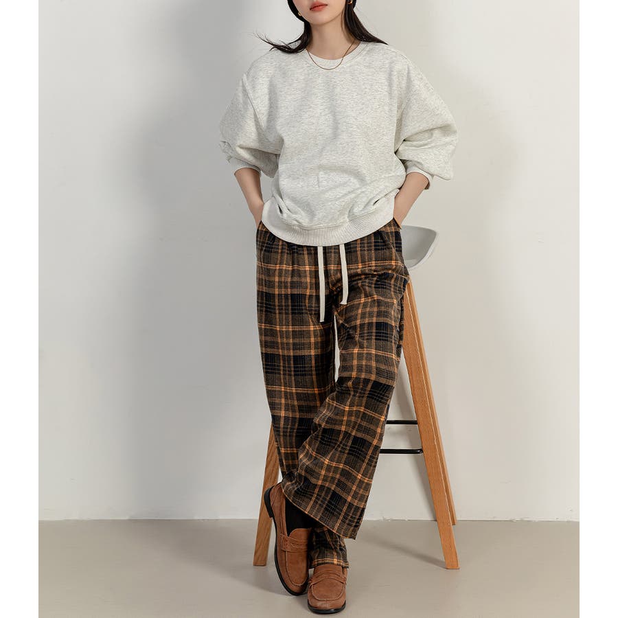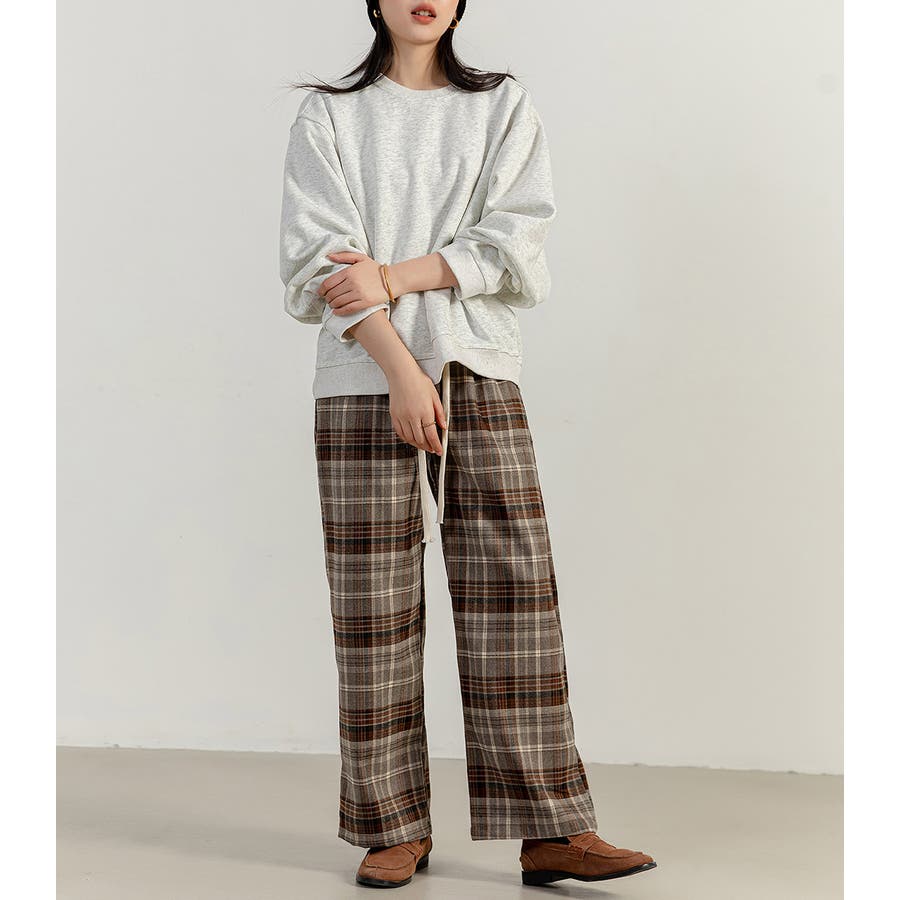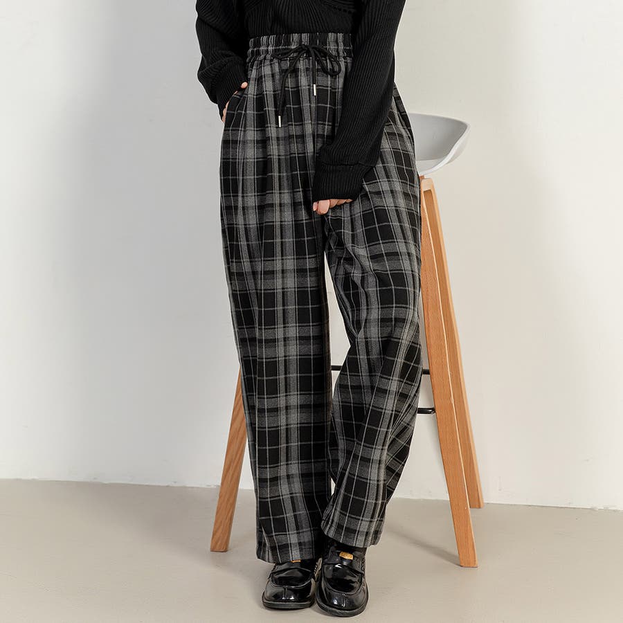 大人カジュアルな印象のチェック柄で、気になる脚ラインをカバーし綺麗なシルエットに。