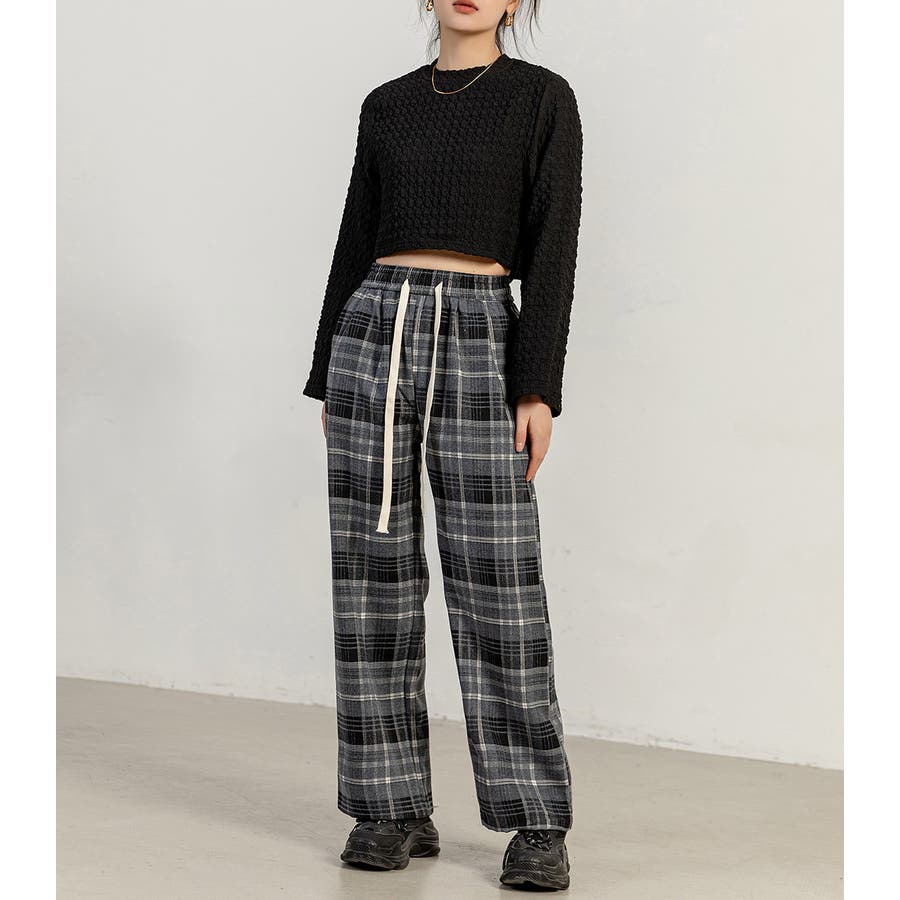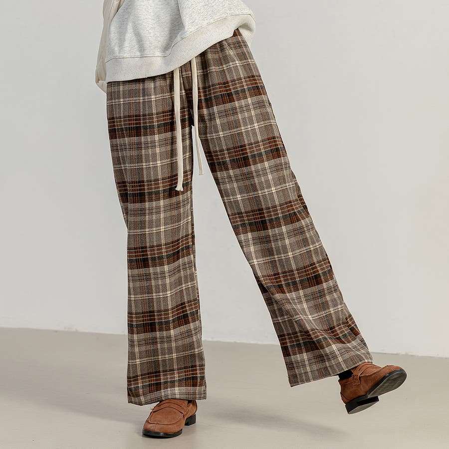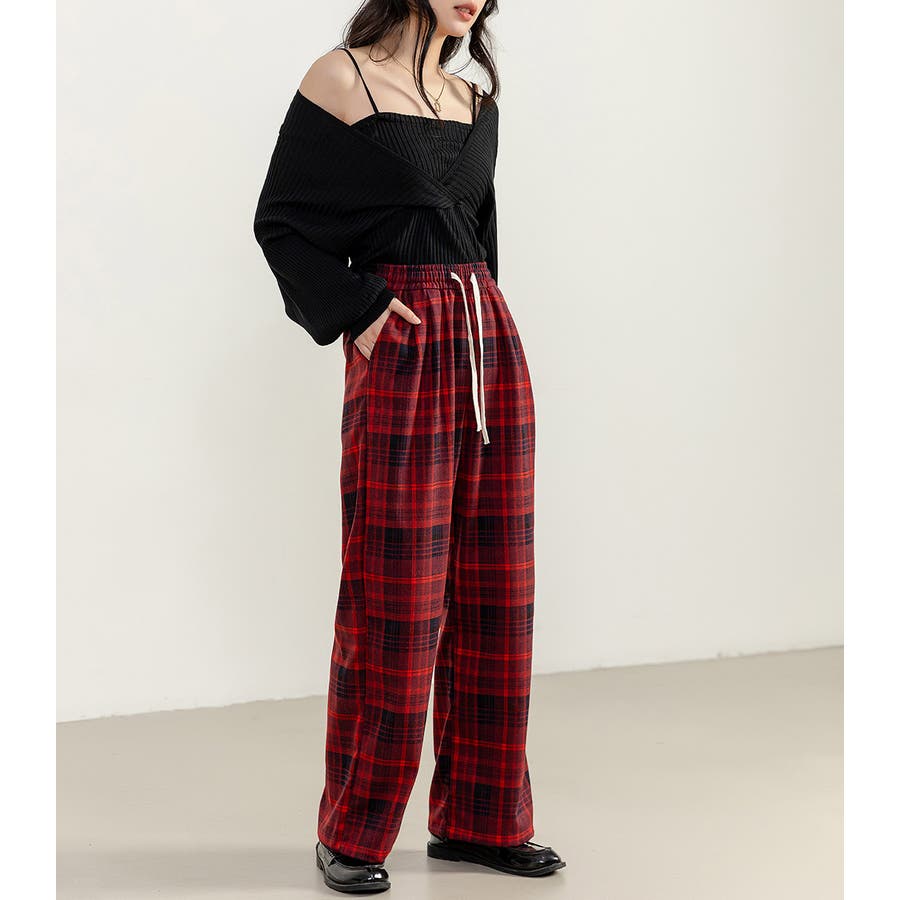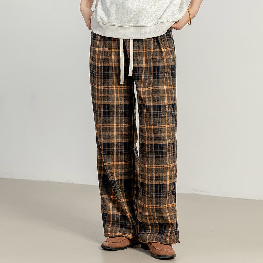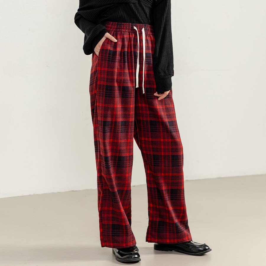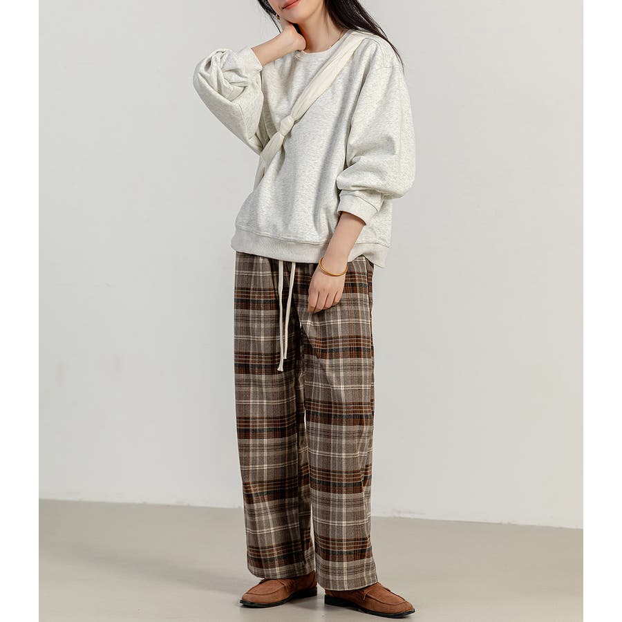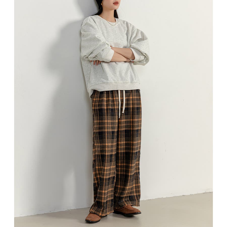 大人カジュアルな印象のチェック柄で、気になる脚ラインをカバーし綺麗なシルエットに。