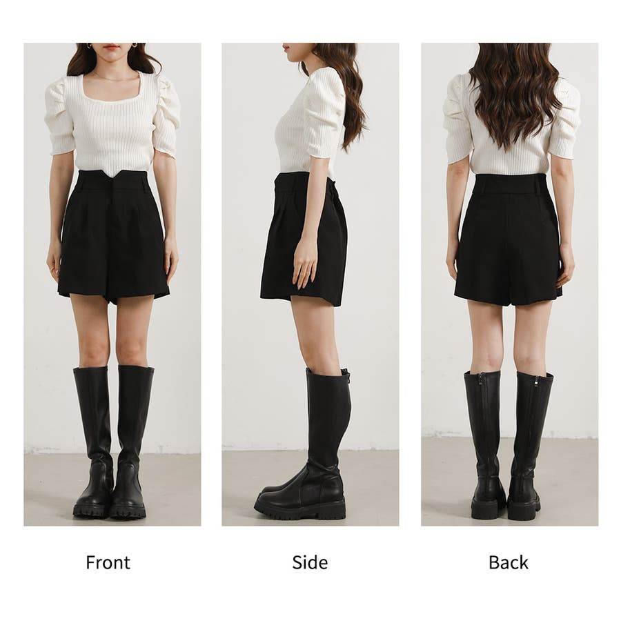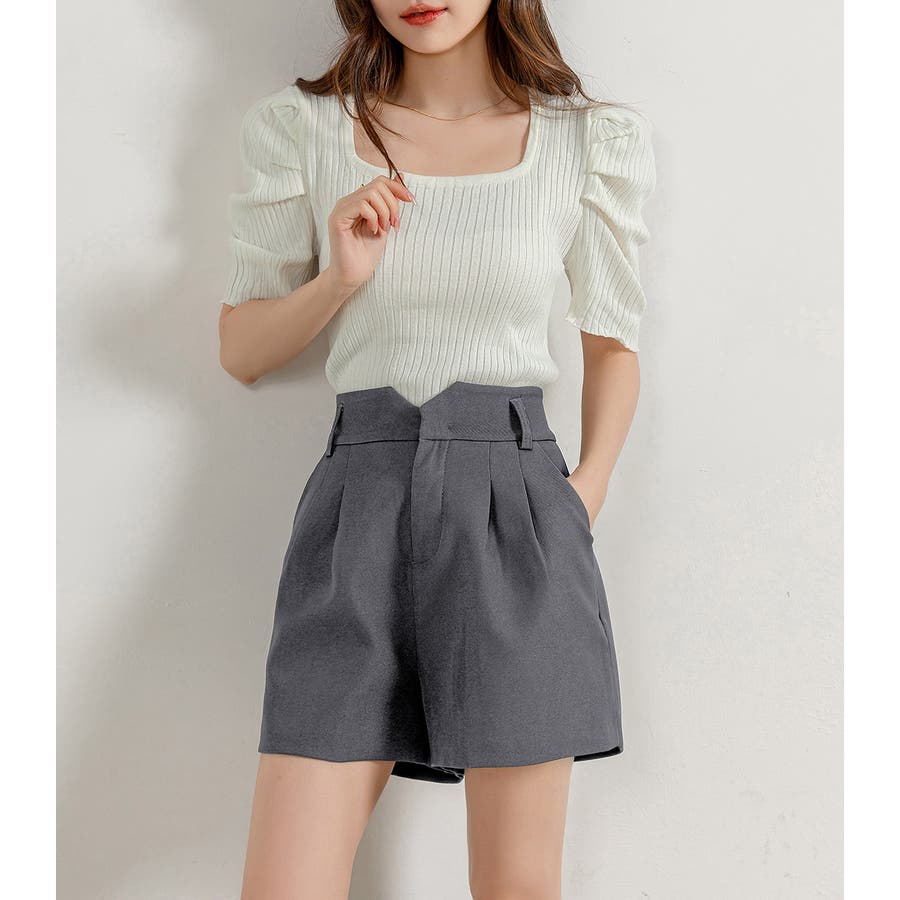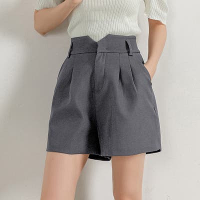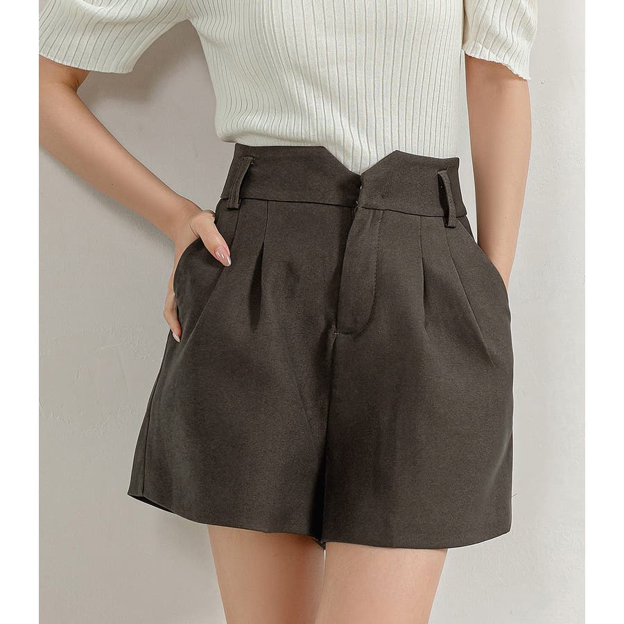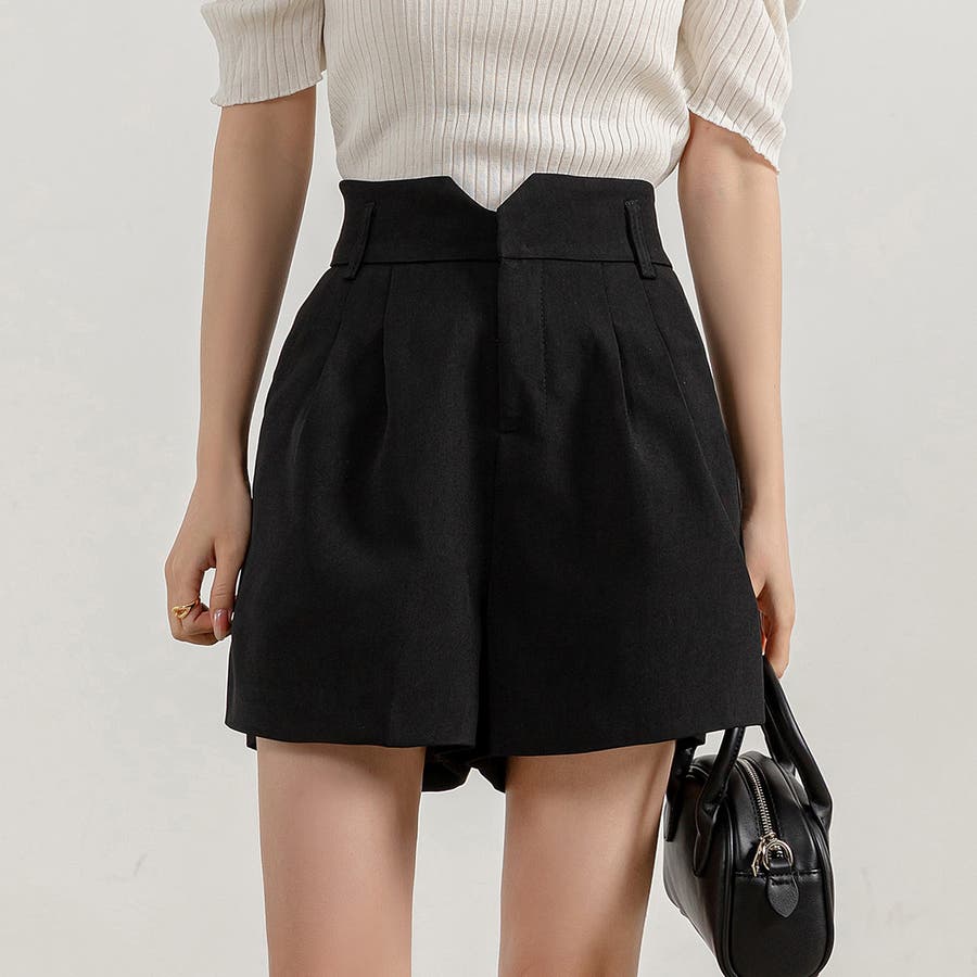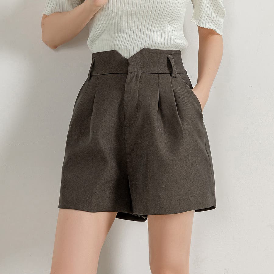 V字になったウエストデザインが目を惹くショートパンツ。