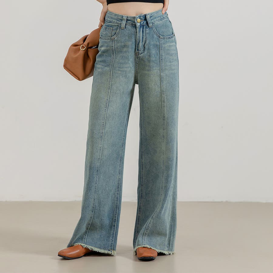 フリンジワイドデニムパンツ