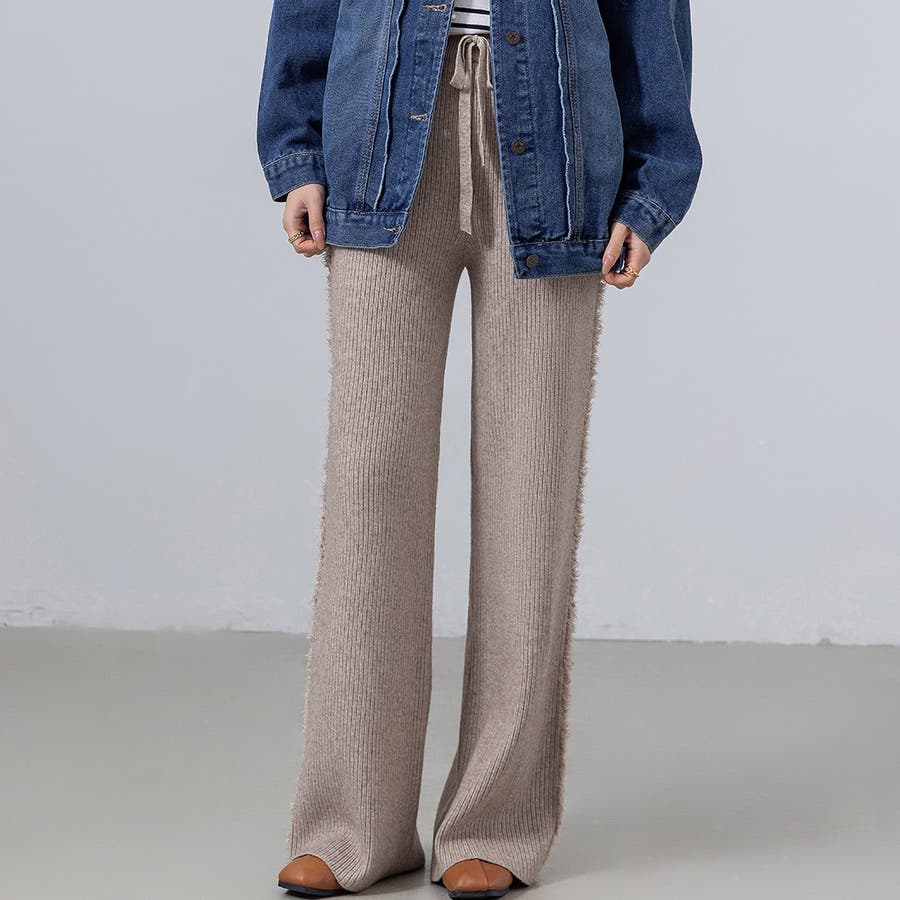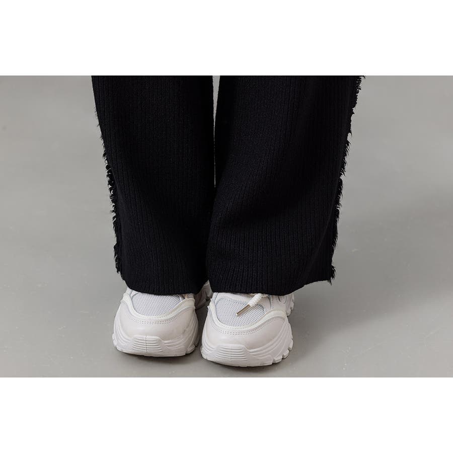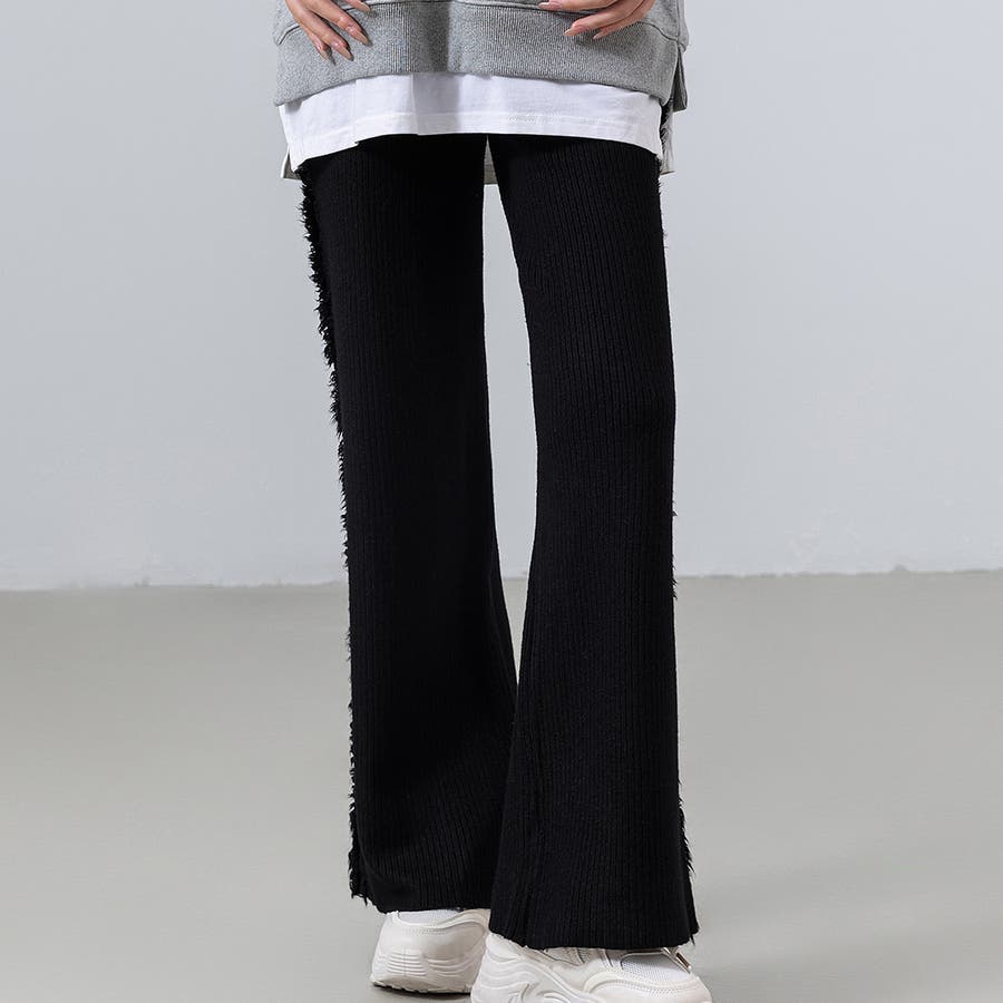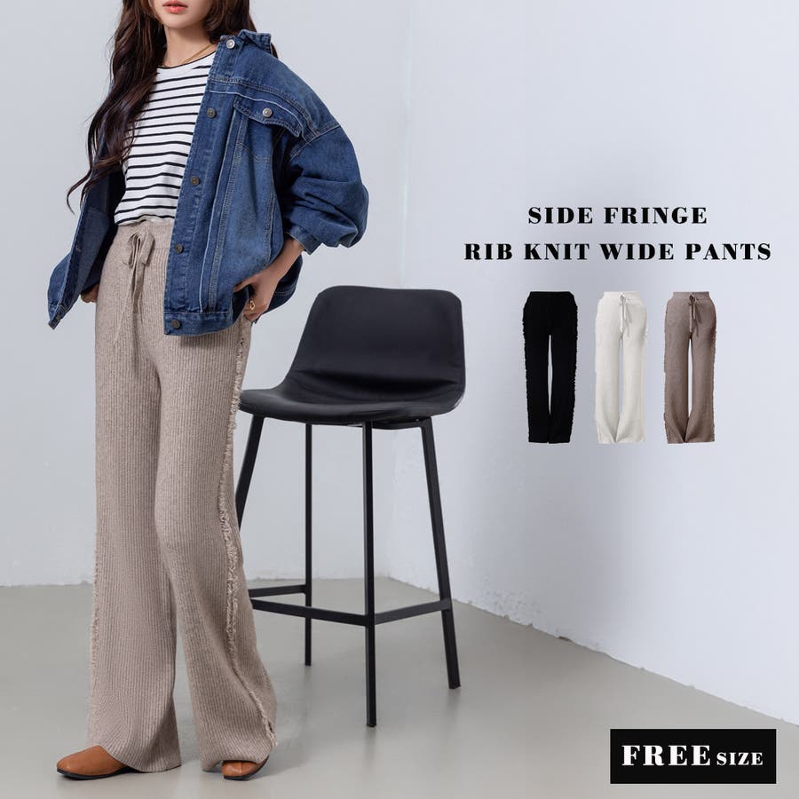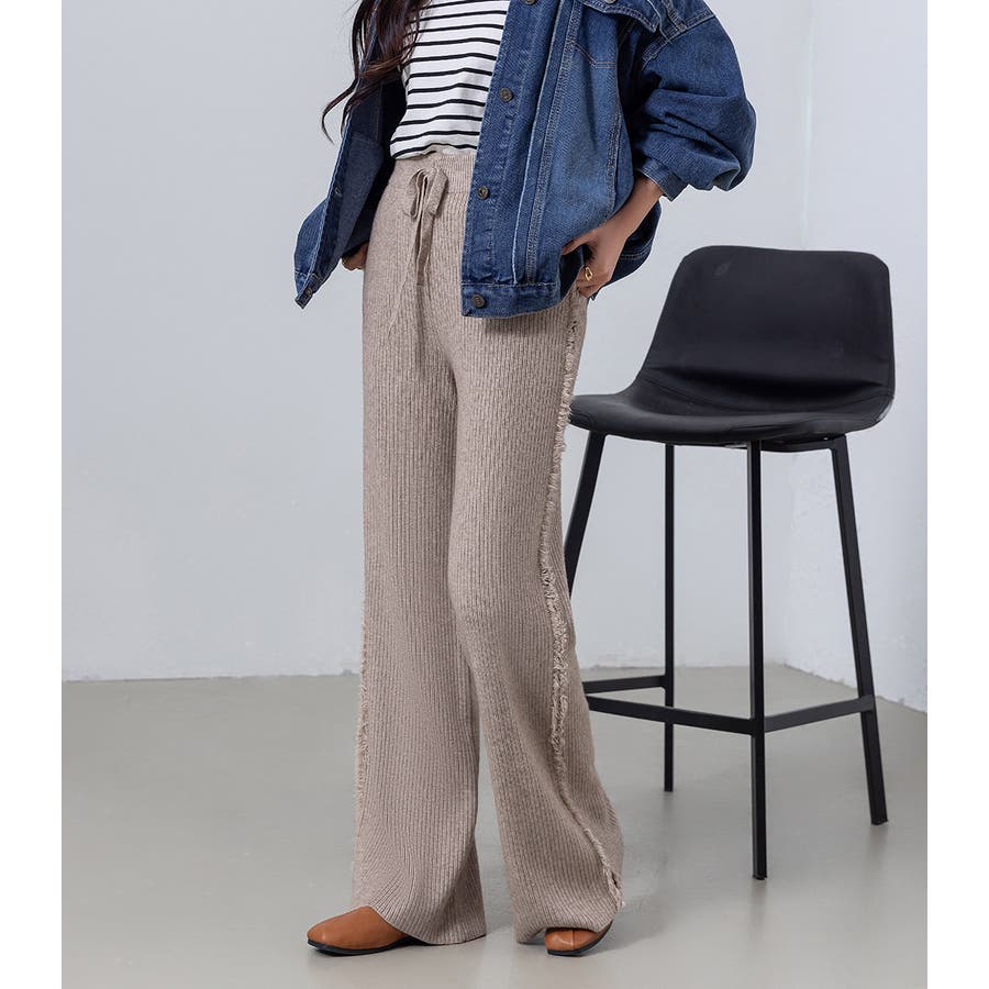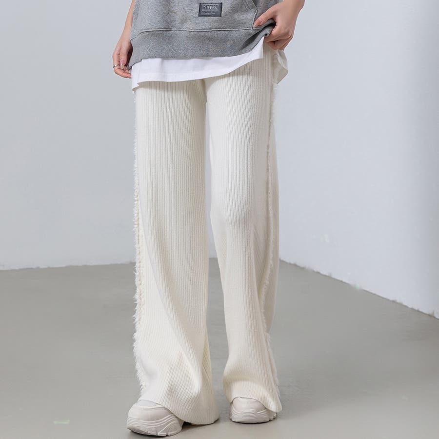SIDE FRINGE RIB KNIT WIDEPANTS