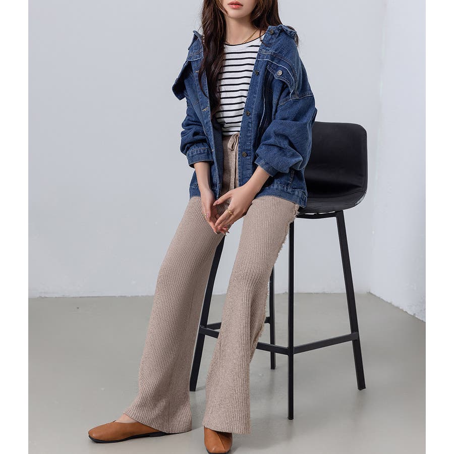 サイドにあしらったフリンジラインがポイントのサイドフリンジリブパンツ。
