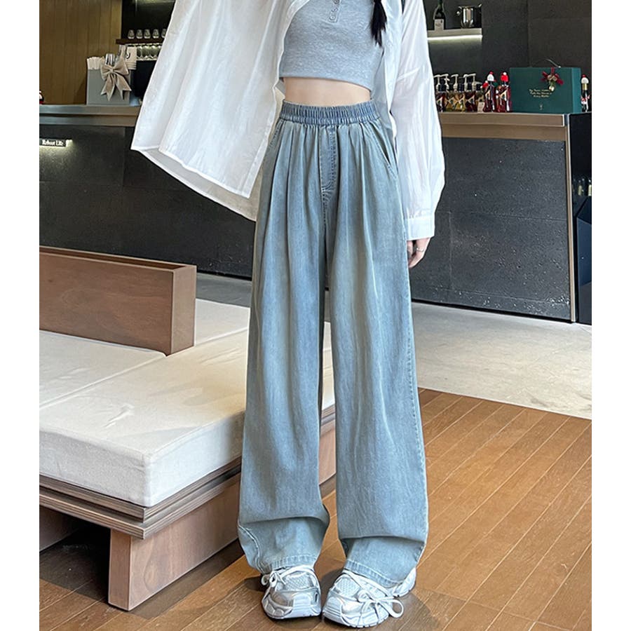 デニム風ワイドイージーパンツ