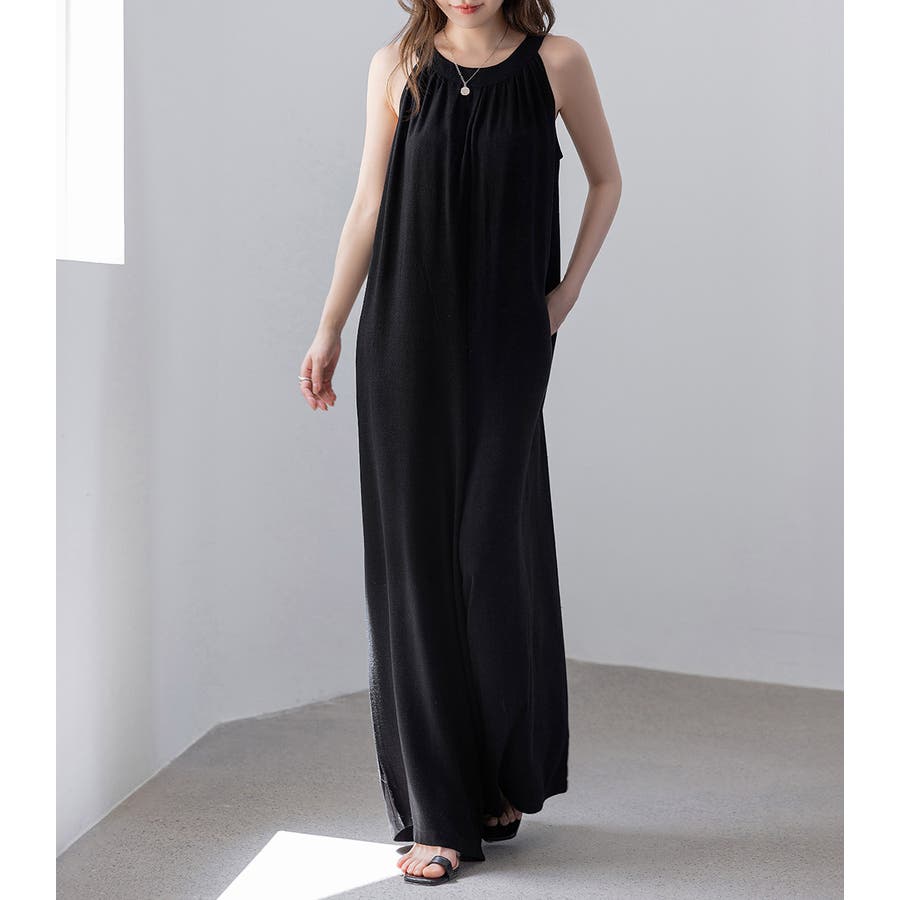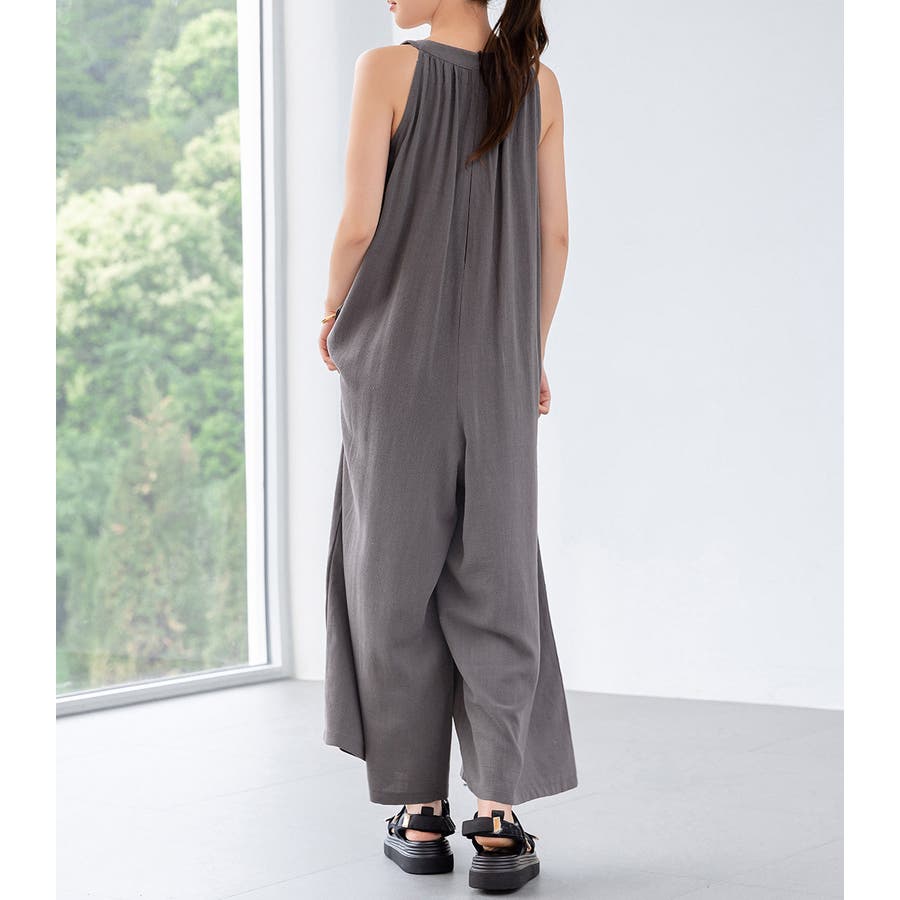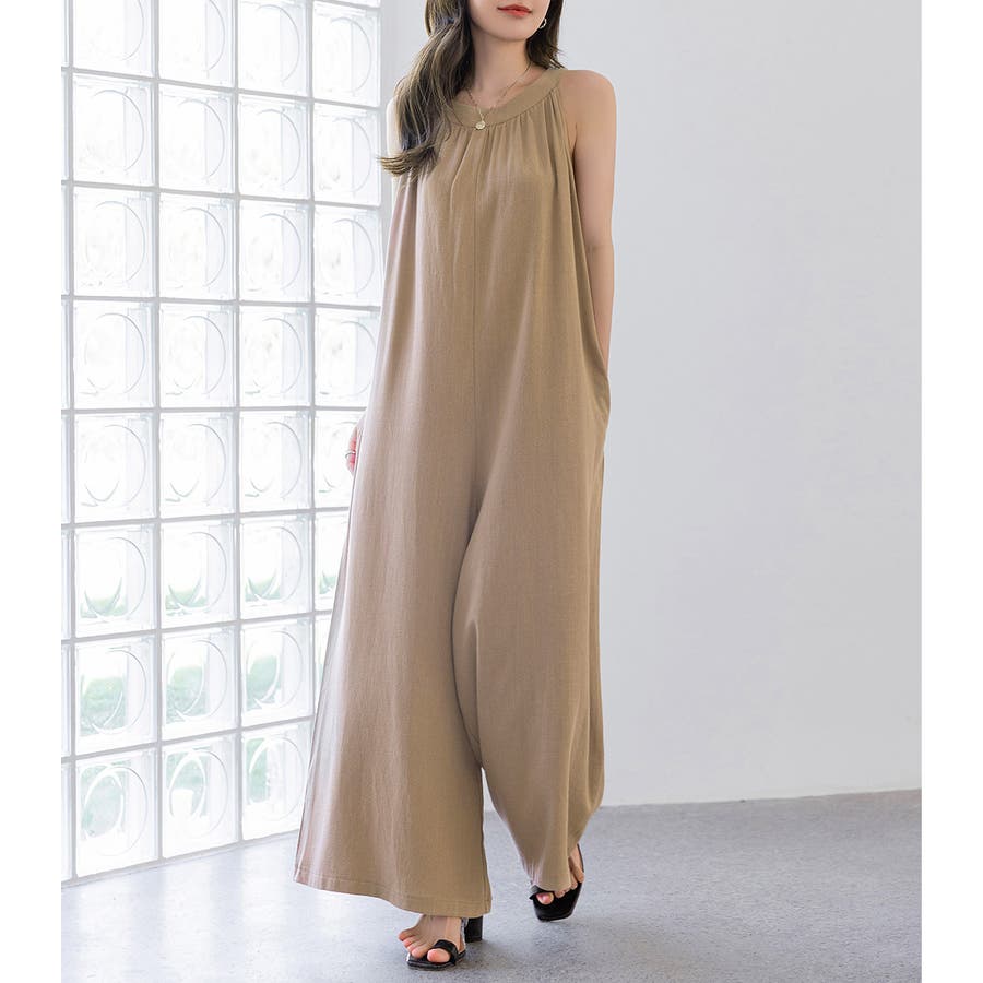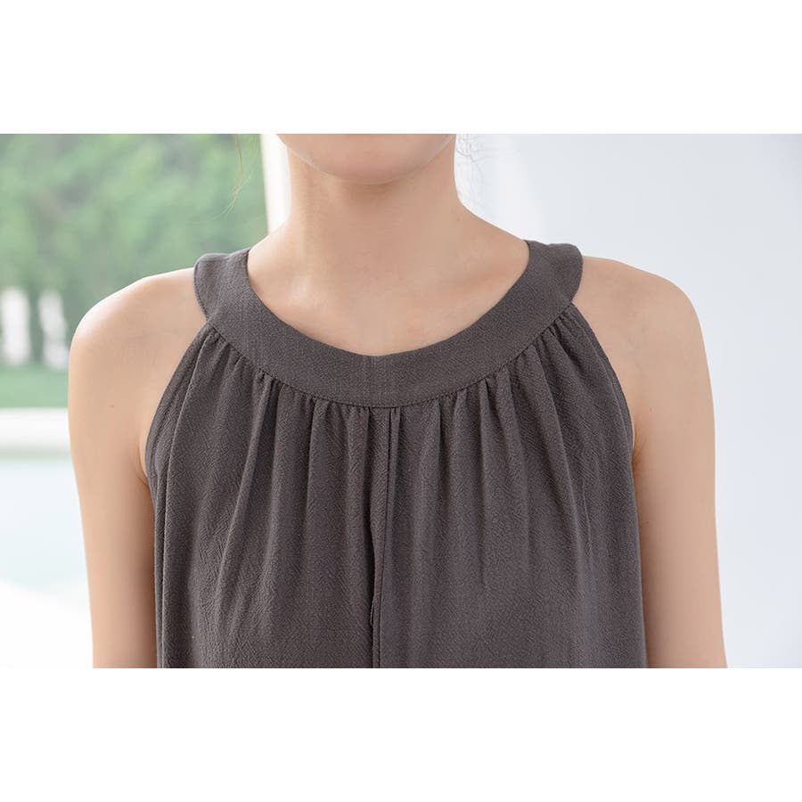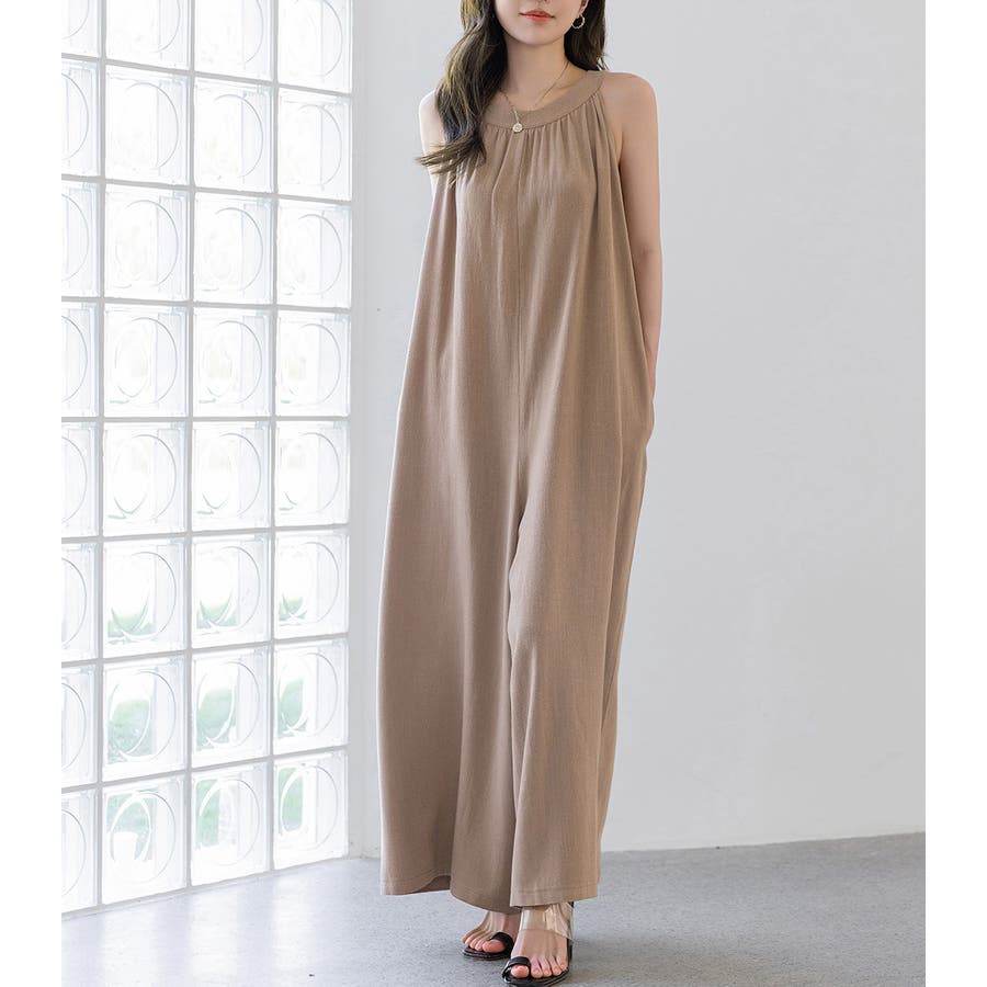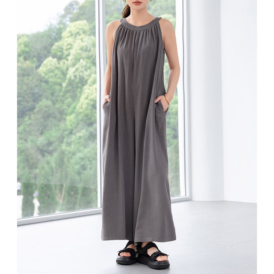 軽やかな着心地と美しいシルエットが魅力のホルターネック風サロペット。