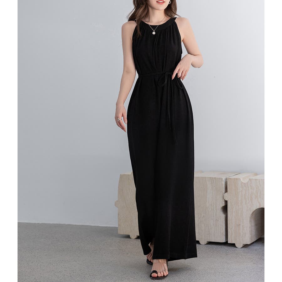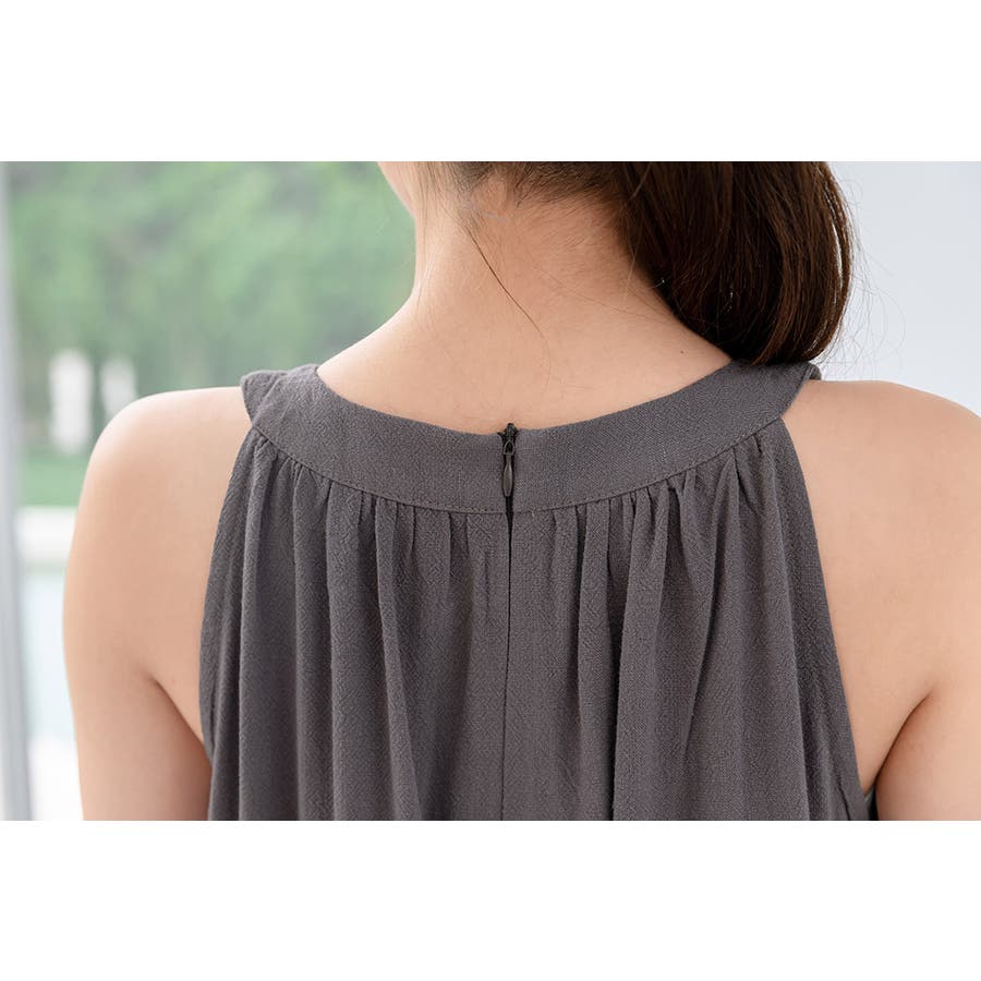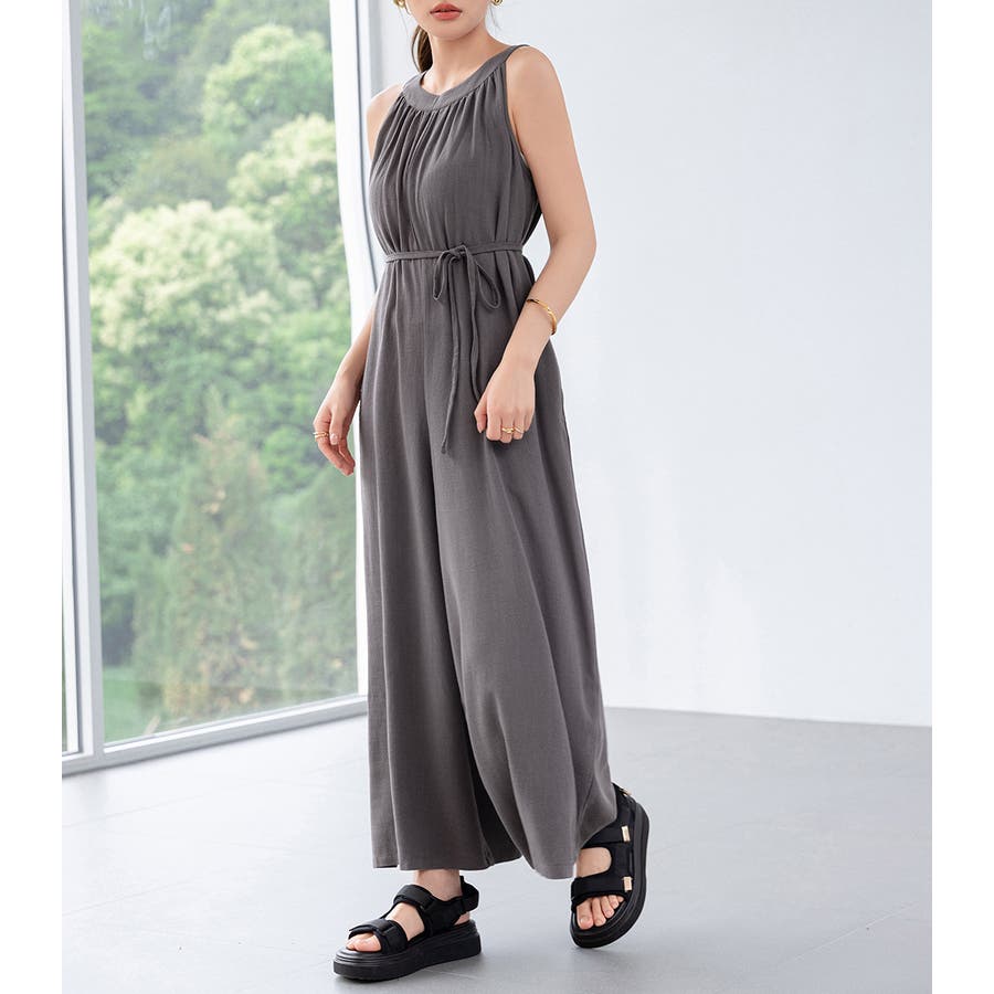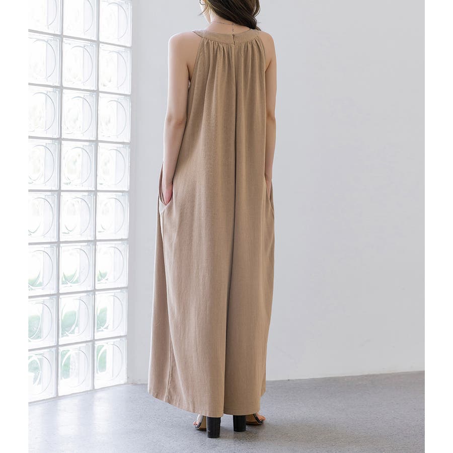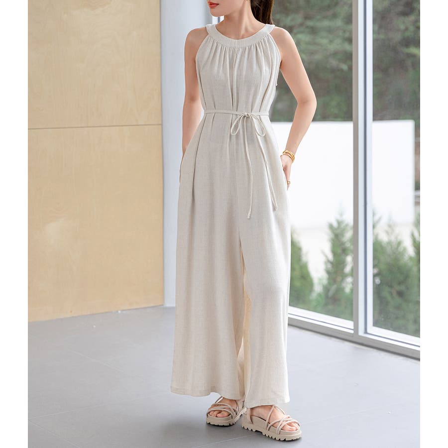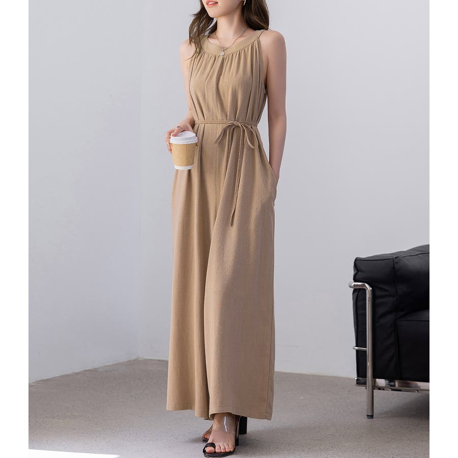 軽やかな着心地と美しいシルエットが魅力のホルターネック風サロペット。