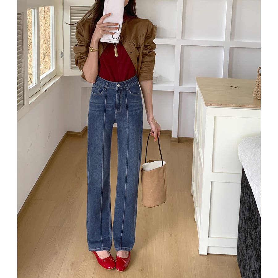 シンプルながらもセンターシームのラインが入った細見えデザイン。