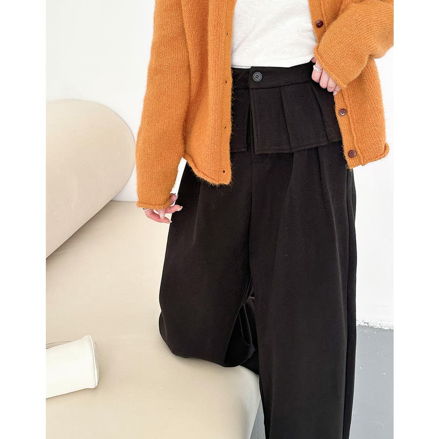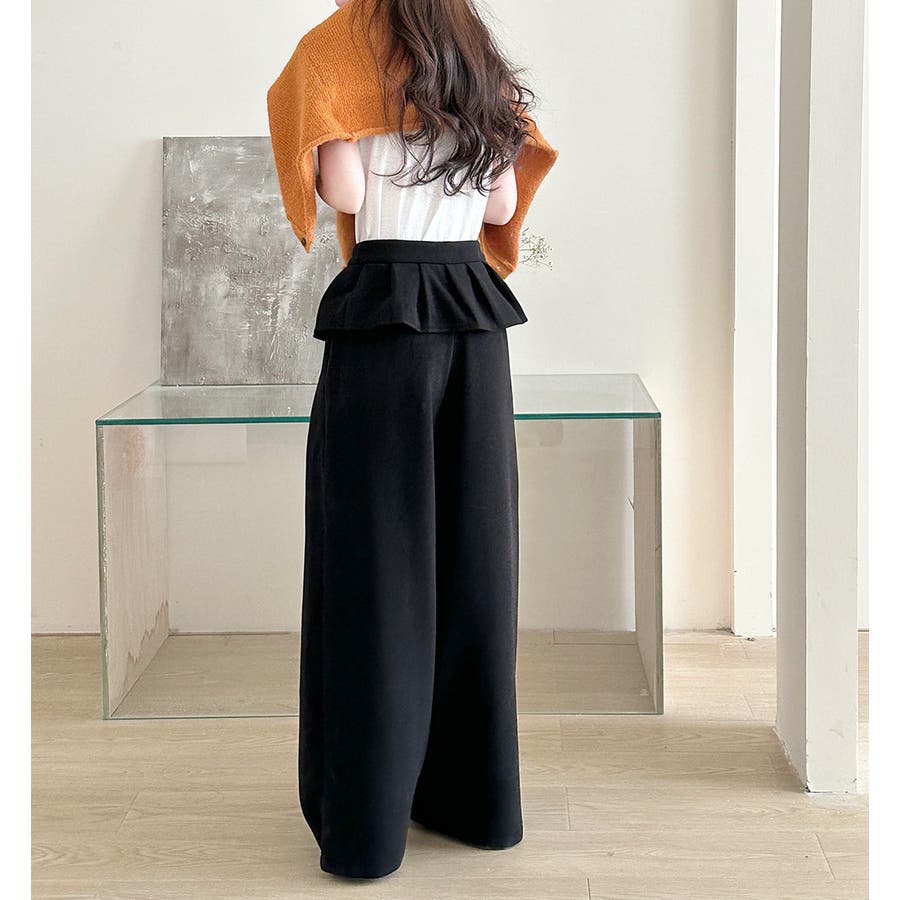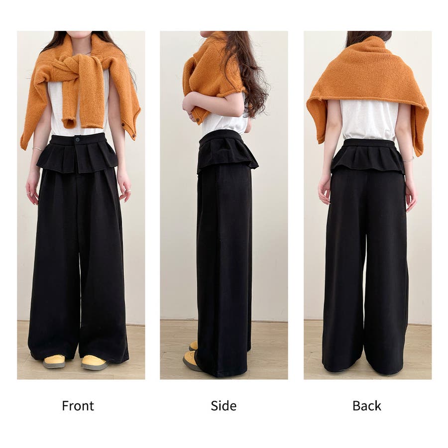 フリル付きハイウエストで女性らしさを演出しワイドシルエットで