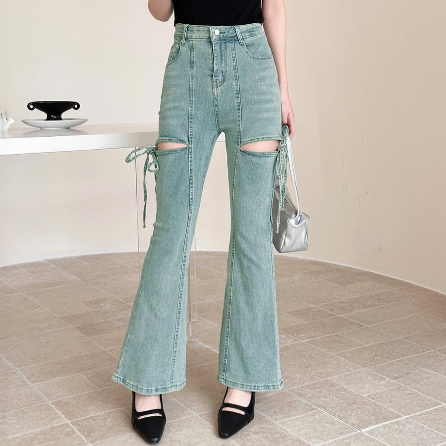 カットアウトリボンデニムパンツ