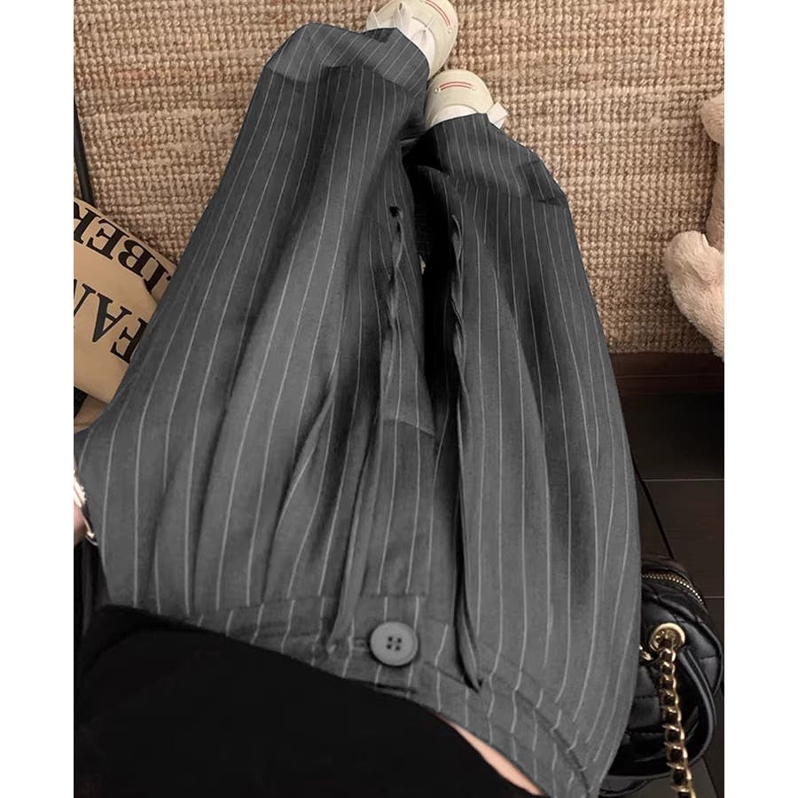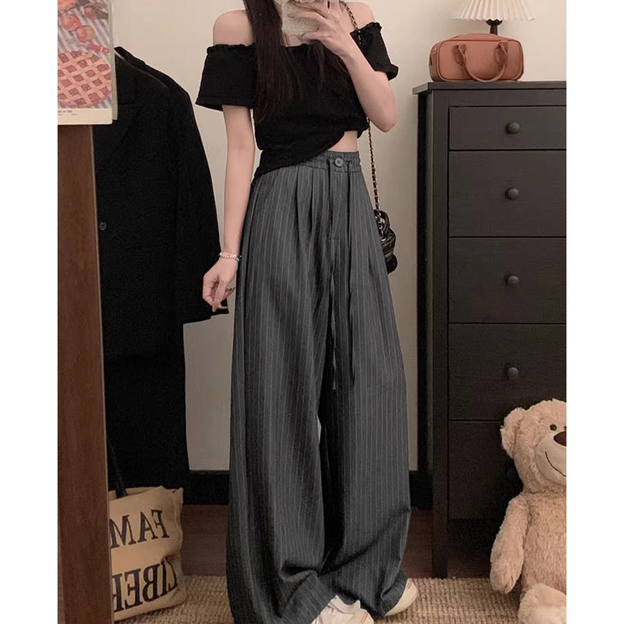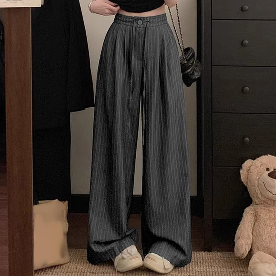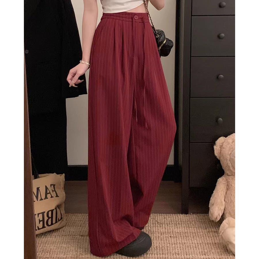 程良いラフさと落ち感のあるストライプ柄のワイドパンツ。