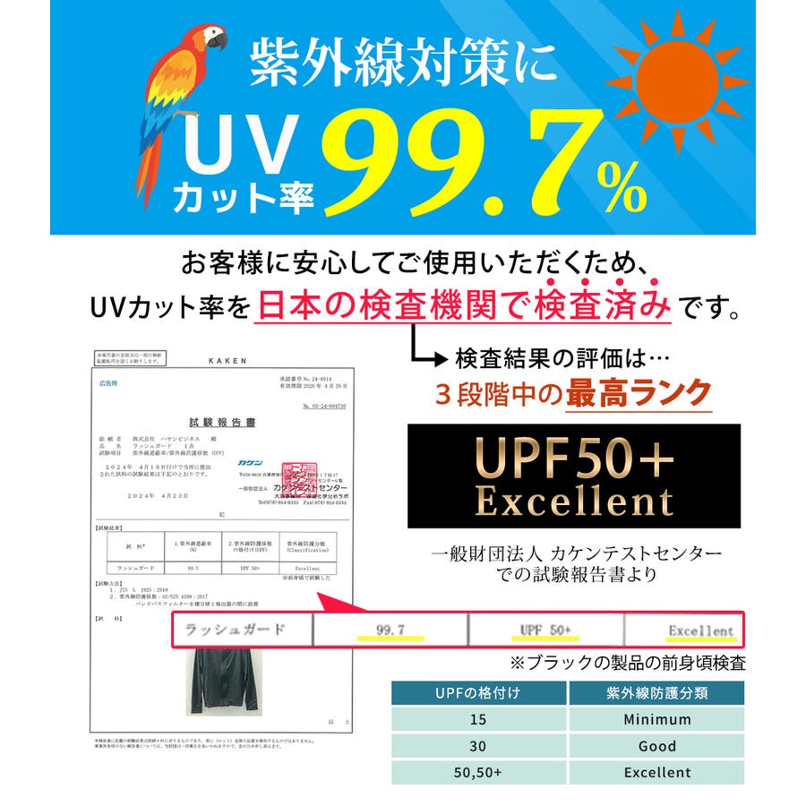 紫外線遮蔽率・UPFを日本の試験機関にて検査済みです。