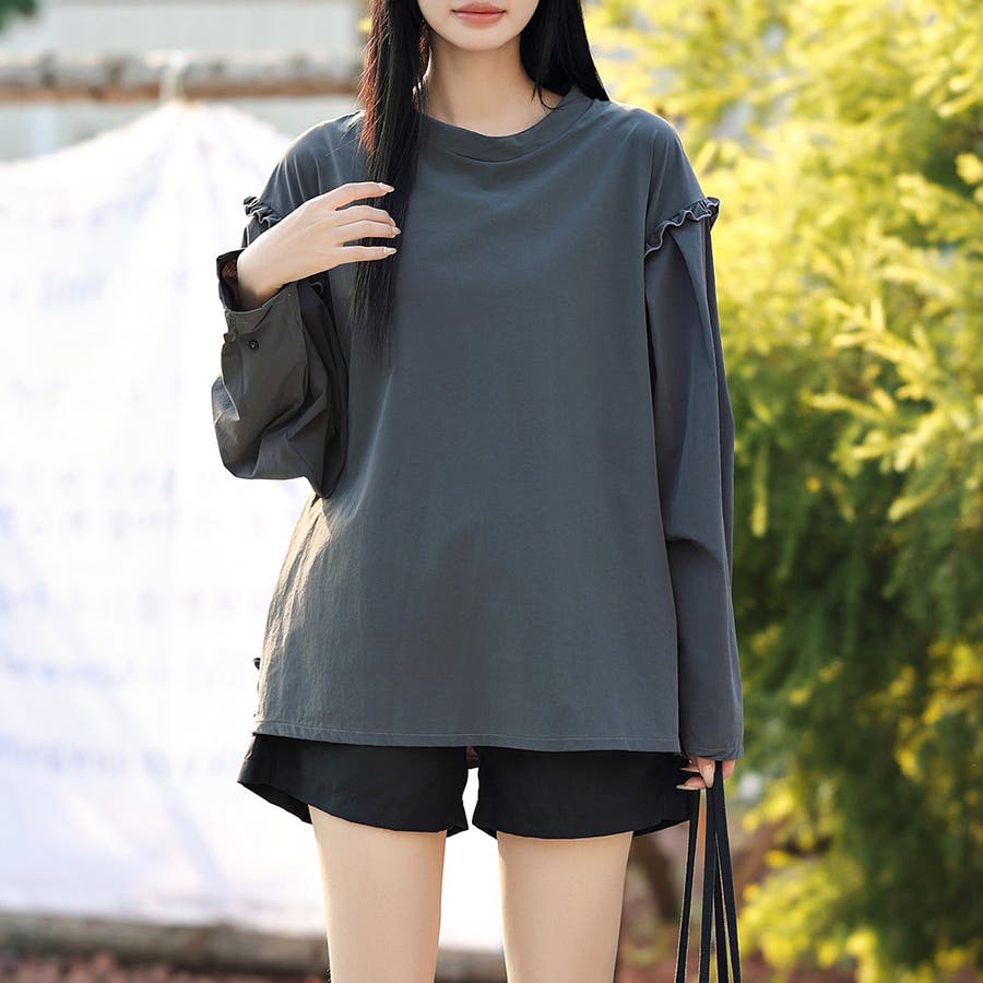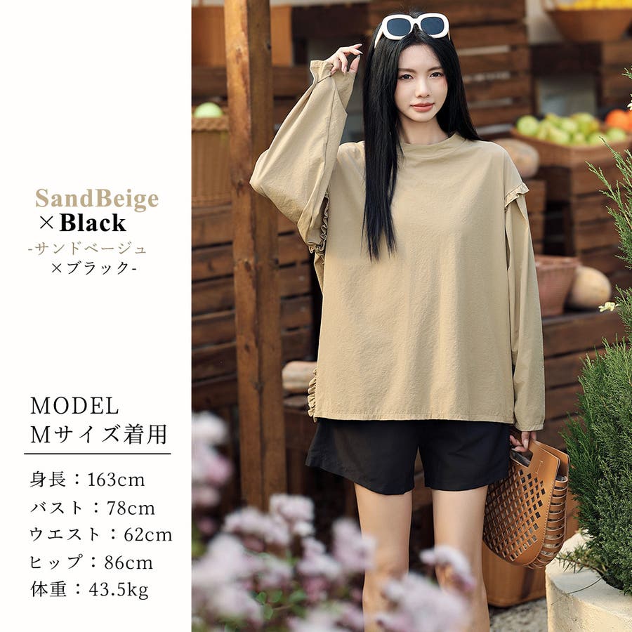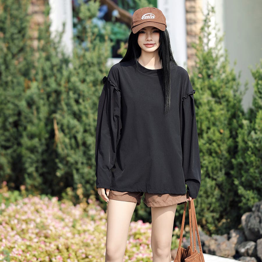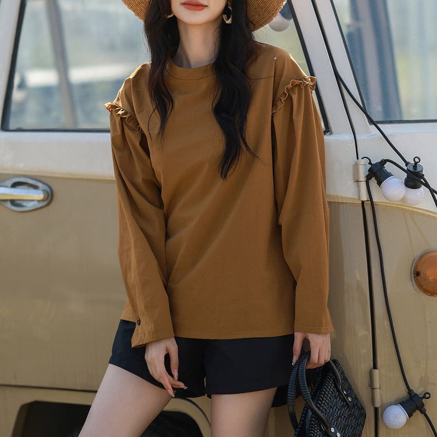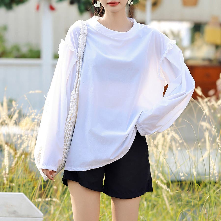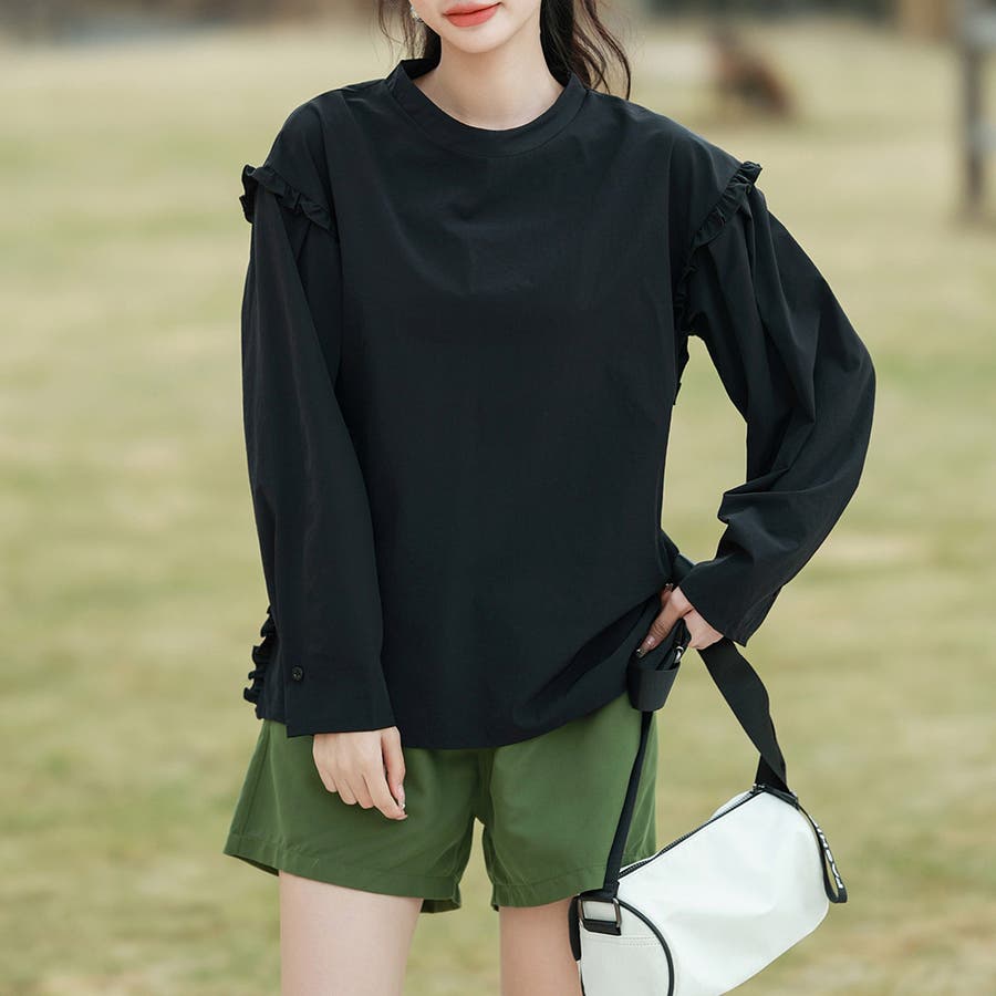 肩フリル&腕を上げた時に覗くサイドのフリルがポイント。
