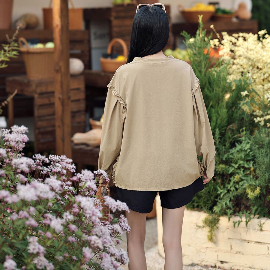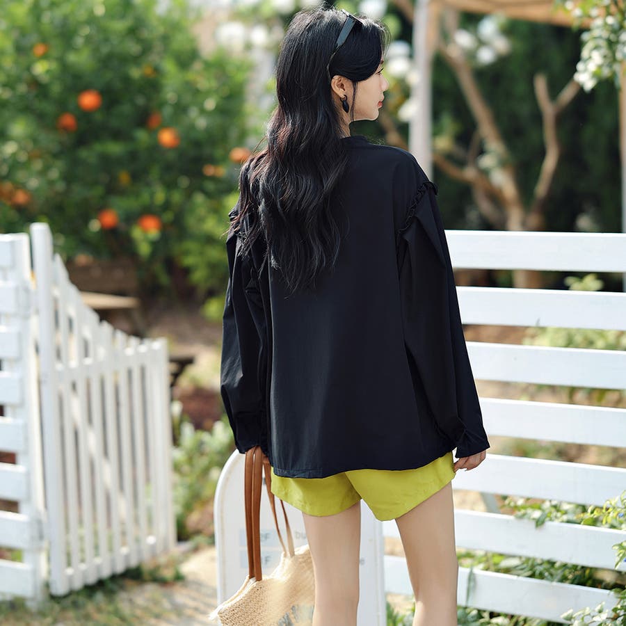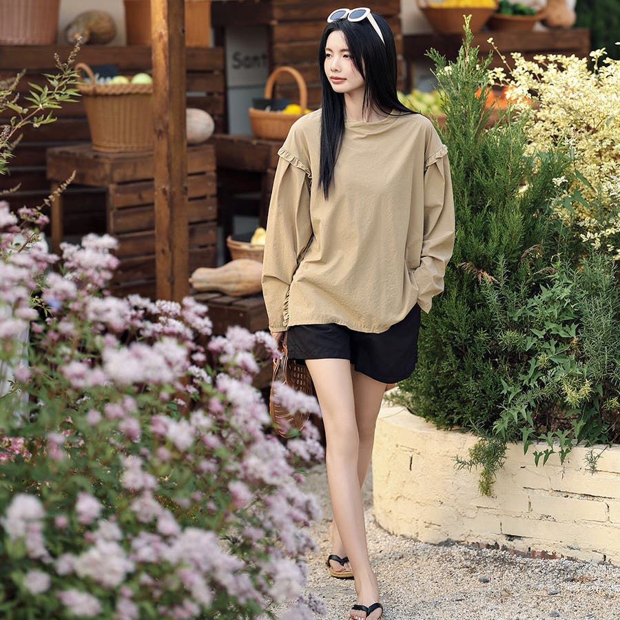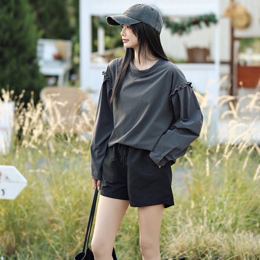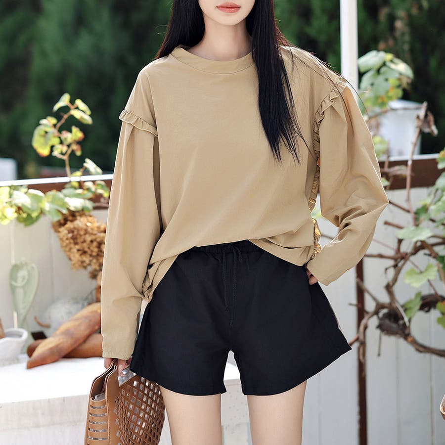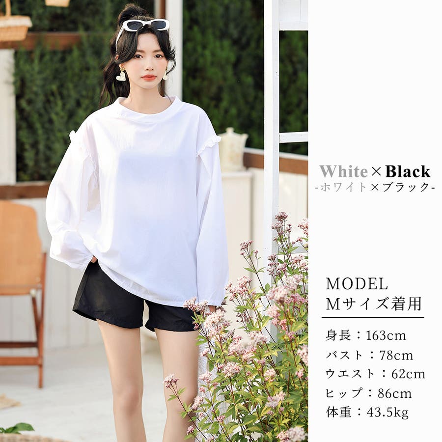肩フリル&腕を上げた時に覗くサイドのフリルがポイント。