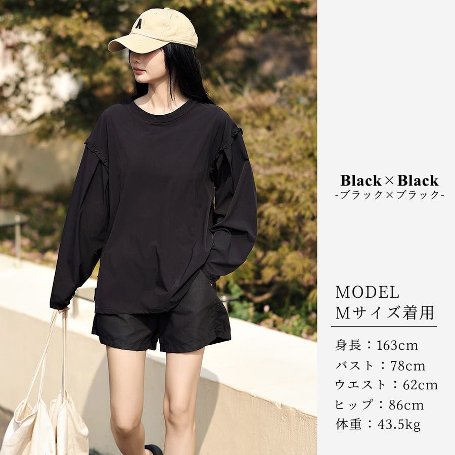 MサイズとLサイズで悩んだけど、Mサイズで良かったです。トップスは伸縮性があるので着脱しやすいです。ボトムスは丈が短めだったけど、スパッツを履いたりして工夫しようと思います。フリルが可愛い。