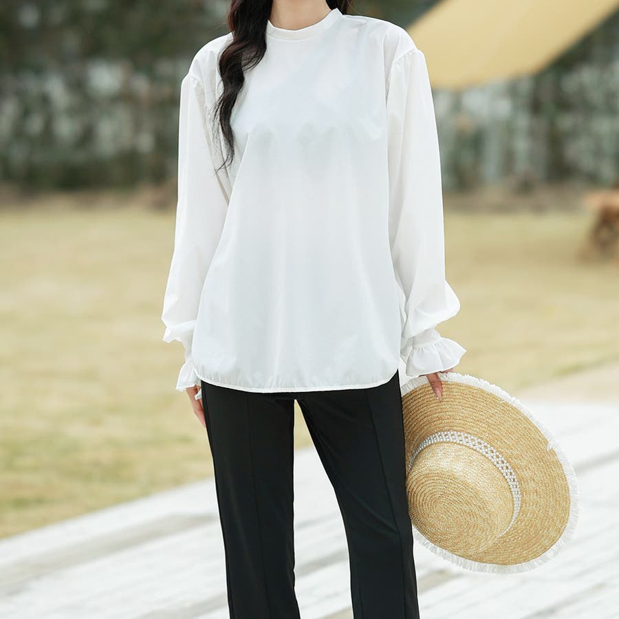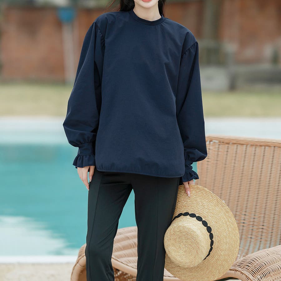 首元・肩・袖のギャザーがオシャレなラッシュガード。