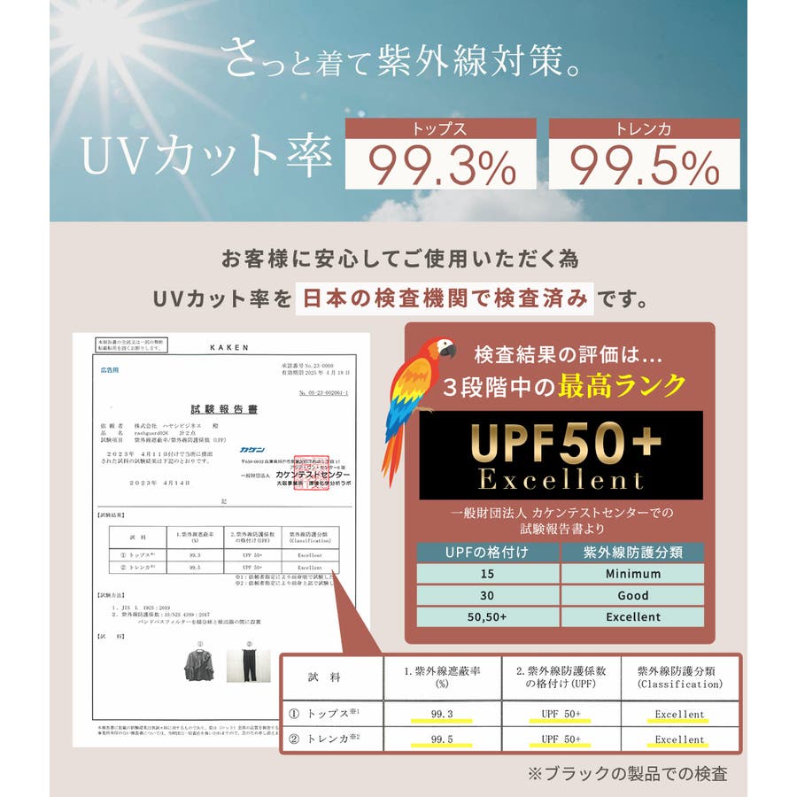 紫外線遮蔽率・UPFを日本の試験機関にて検査済みです。
