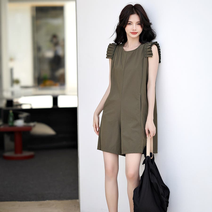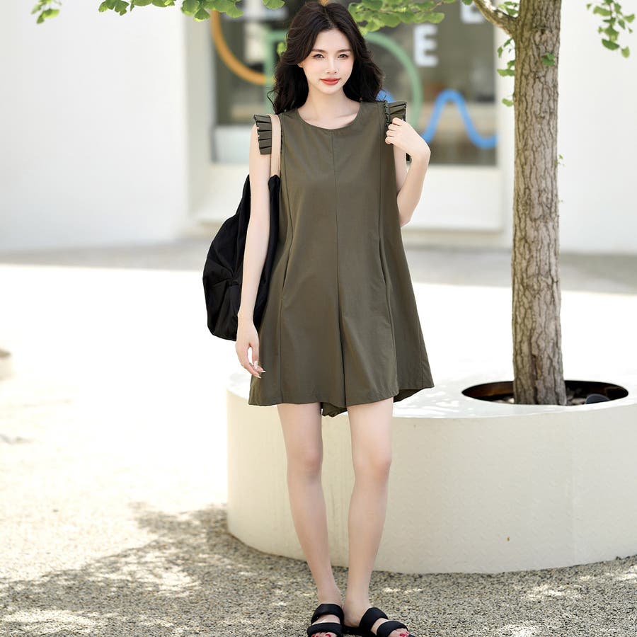 プリーツフリルがお洒落なオールインワンタイプのラッシュガード。
