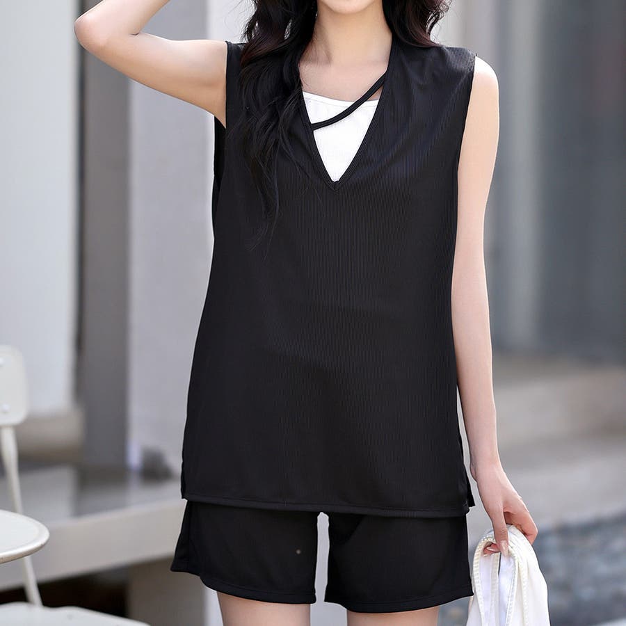 上下セットでしっかりと体型カバーできるのも嬉しいポイント。