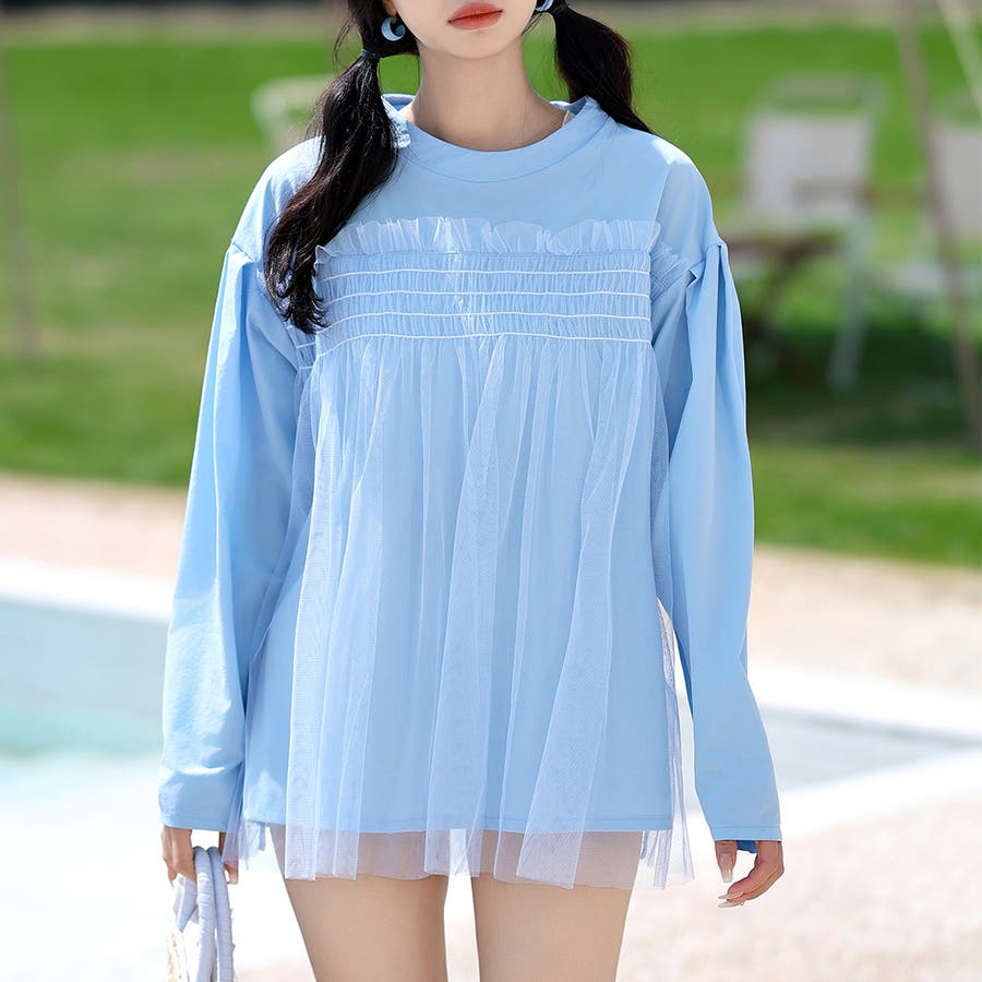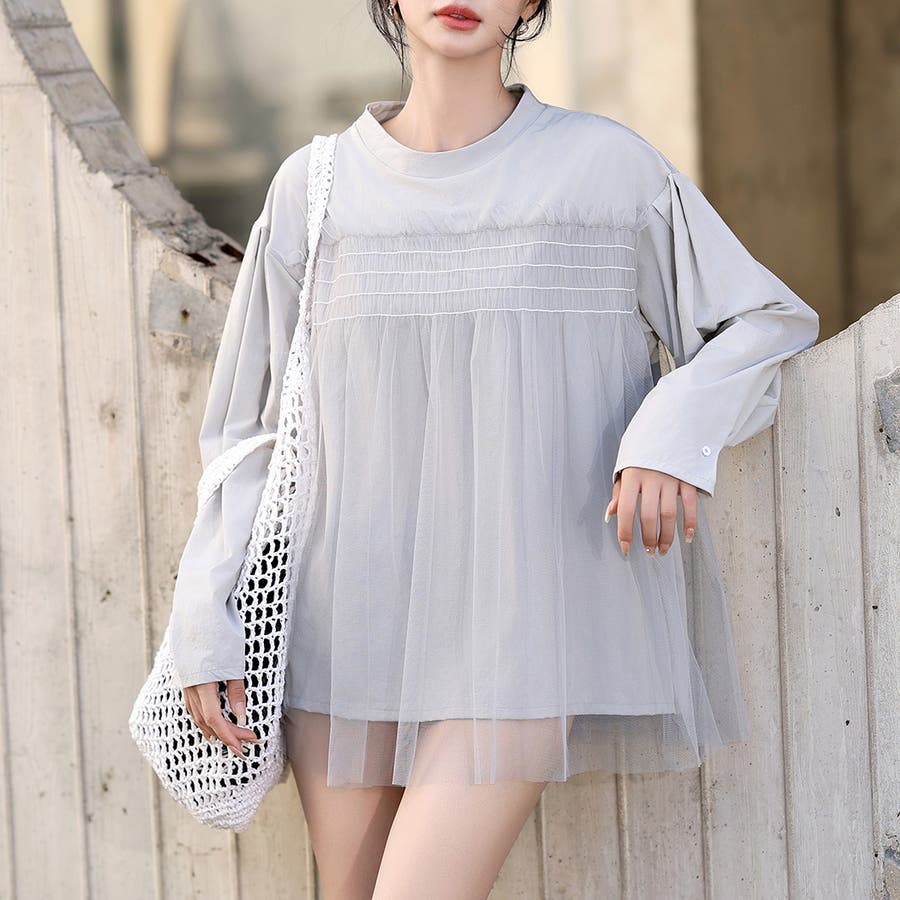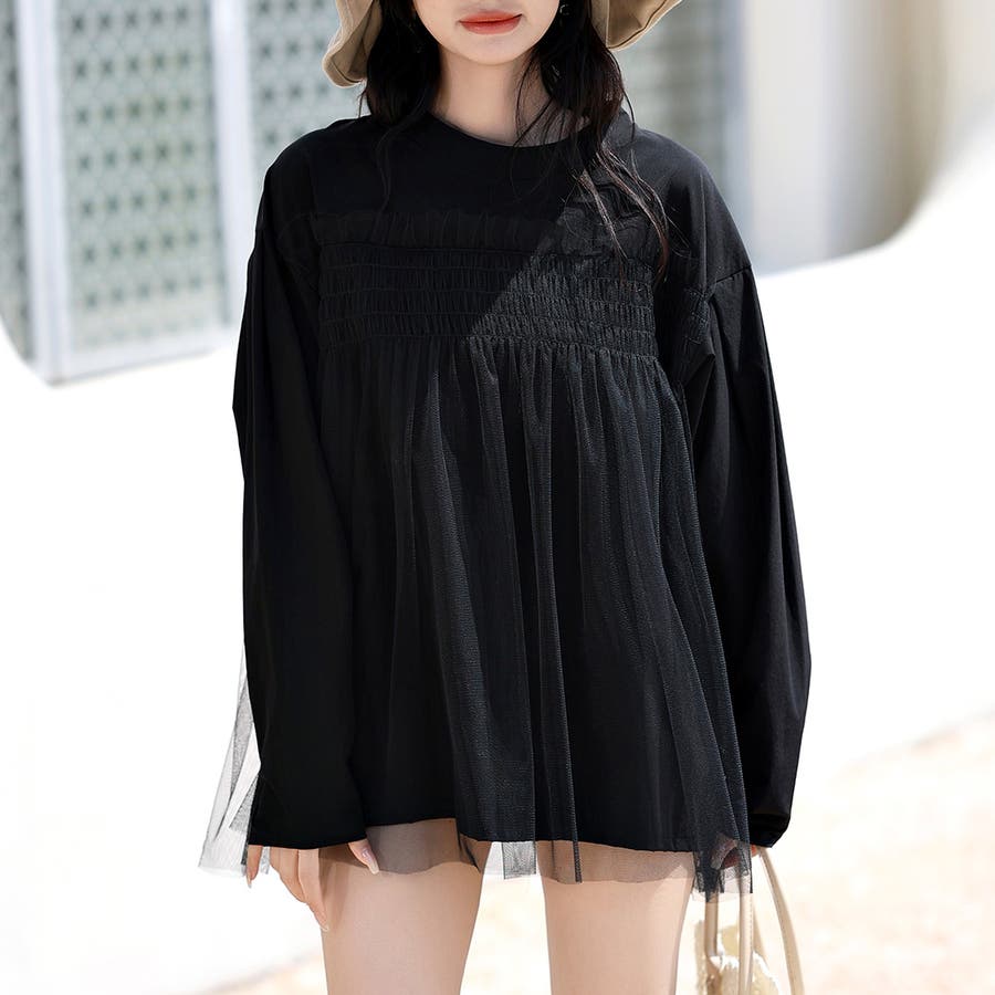 大人っぽガーリーなシャーリング×チュールが目を引くデザイン!