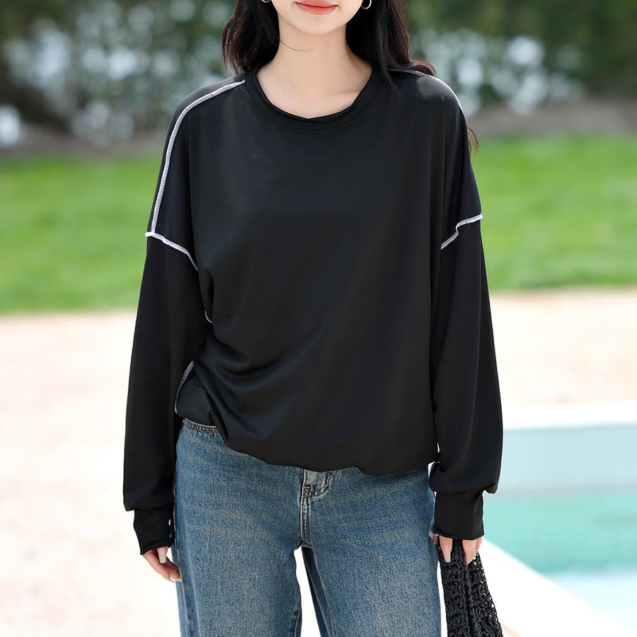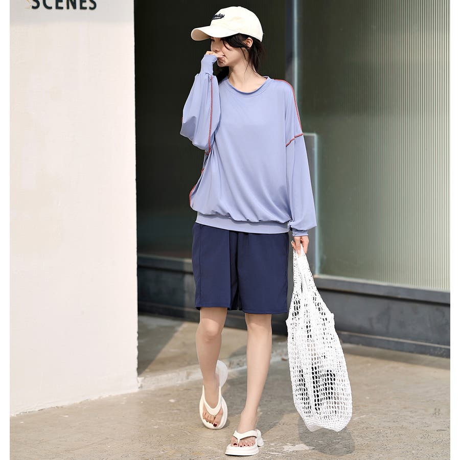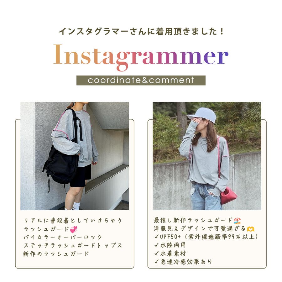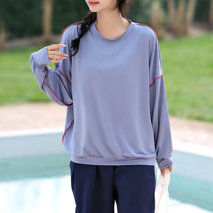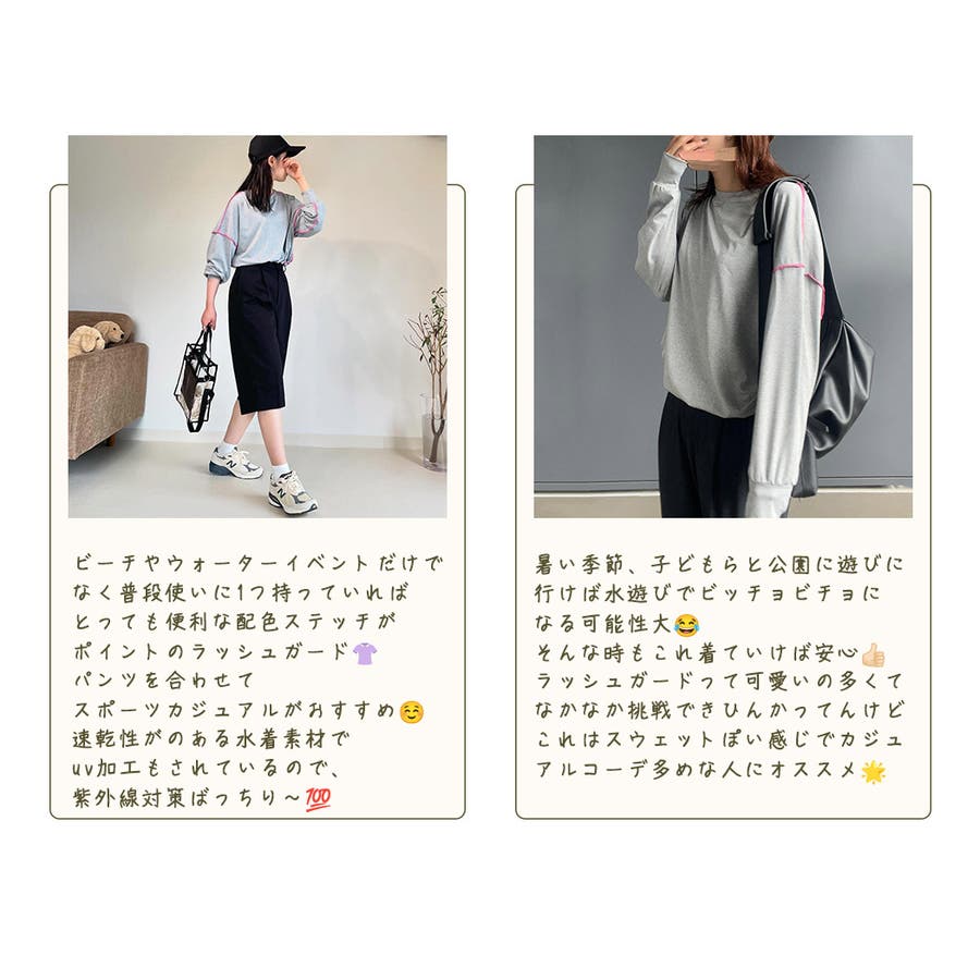 配色ステッチがポイントの大人カジュアルな服見えラッシュガード。