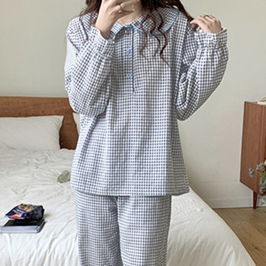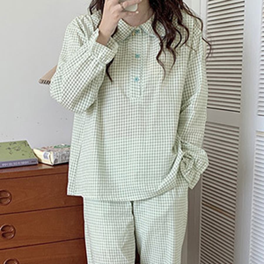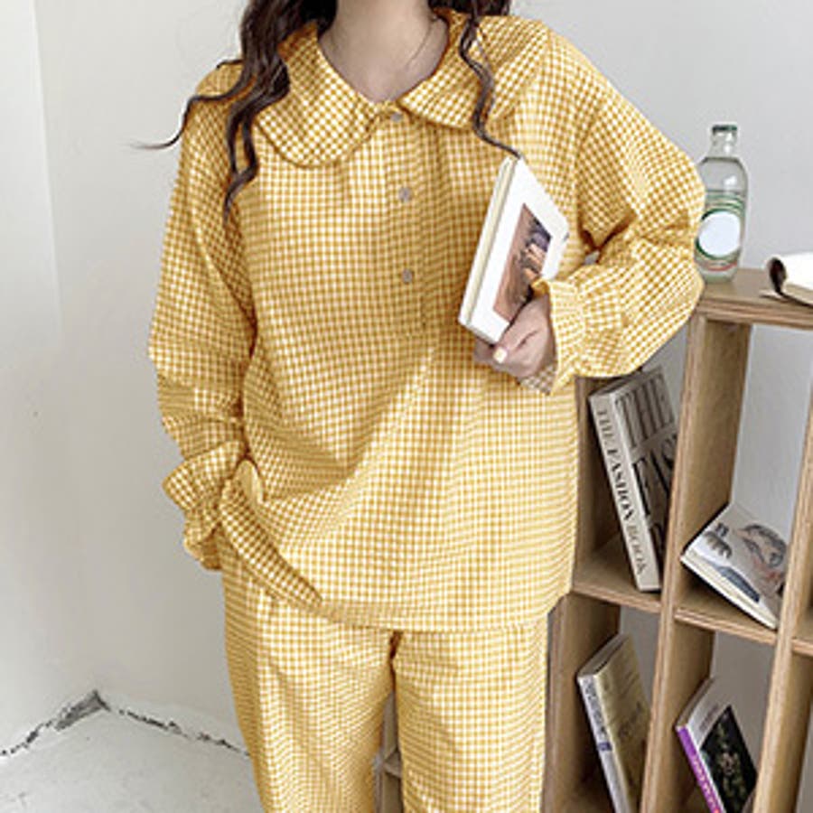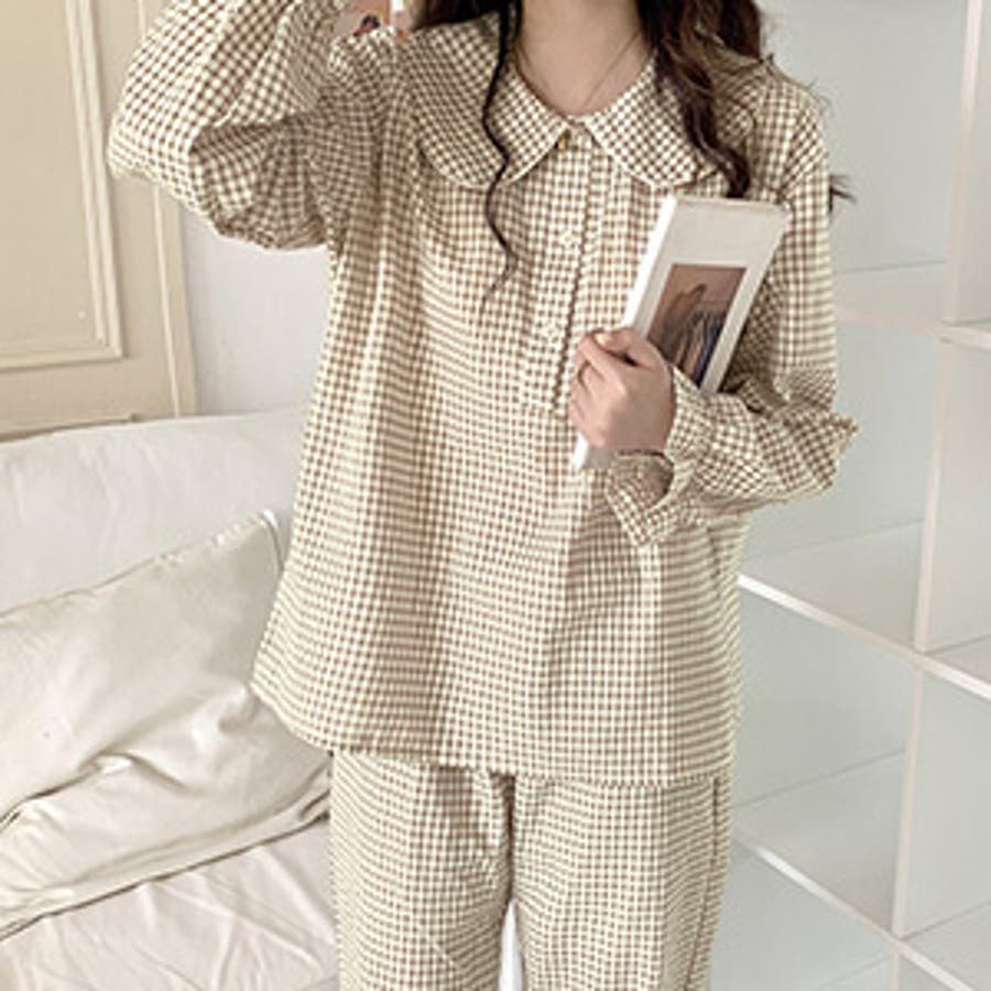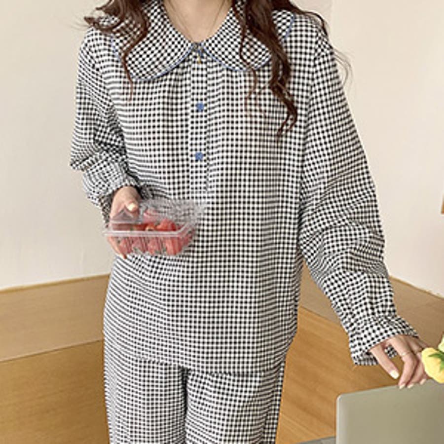 大きめの襟とギンガムチェックがキュートなパジャマ。