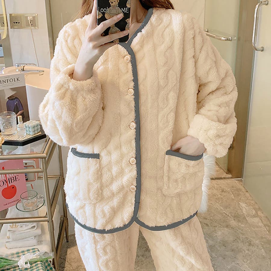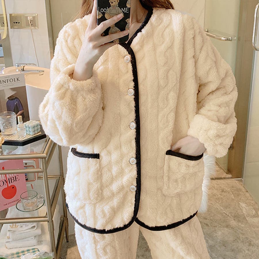ふわふわで優しい手触りのもこもこ起毛パジャマ。