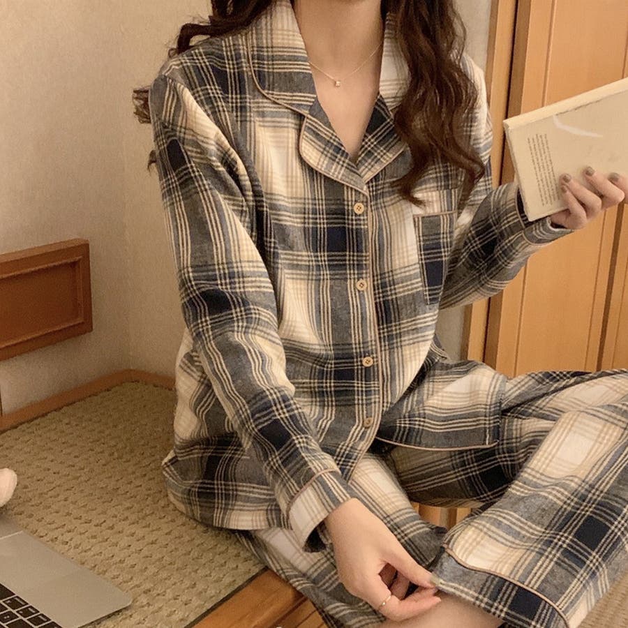 ルームウェア チェック 長袖