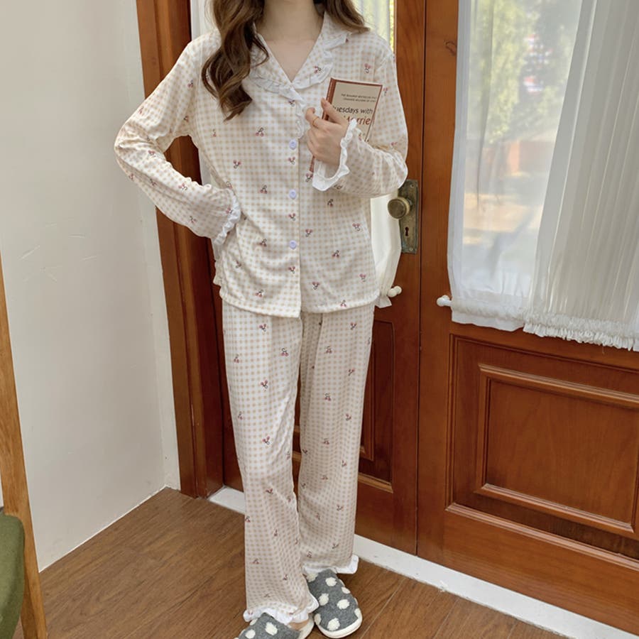 レトロフェミニンな雰囲気のチェリー×ギンガムチェック柄。
