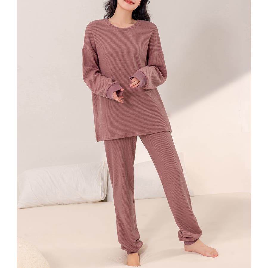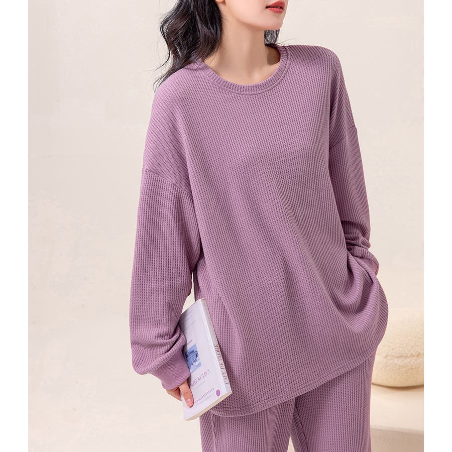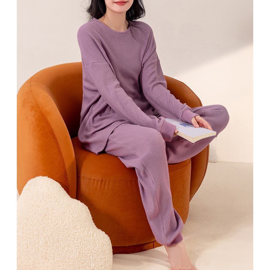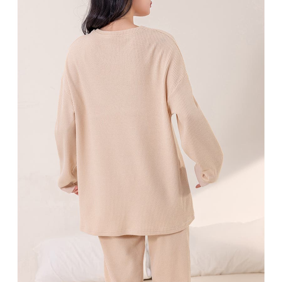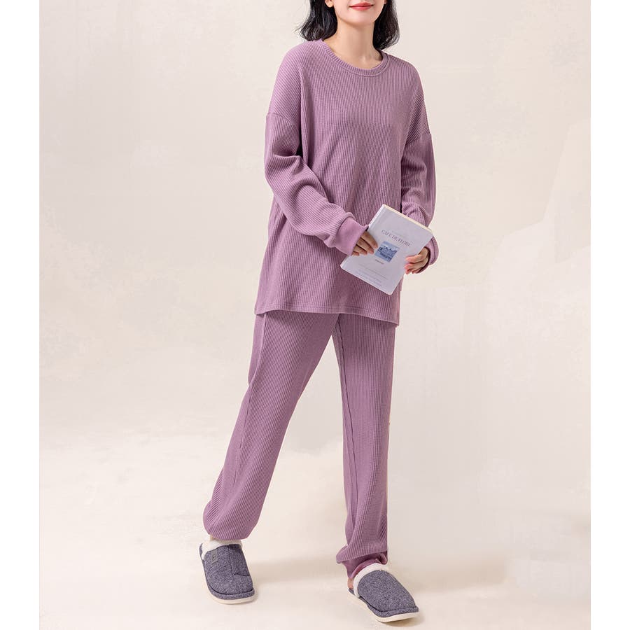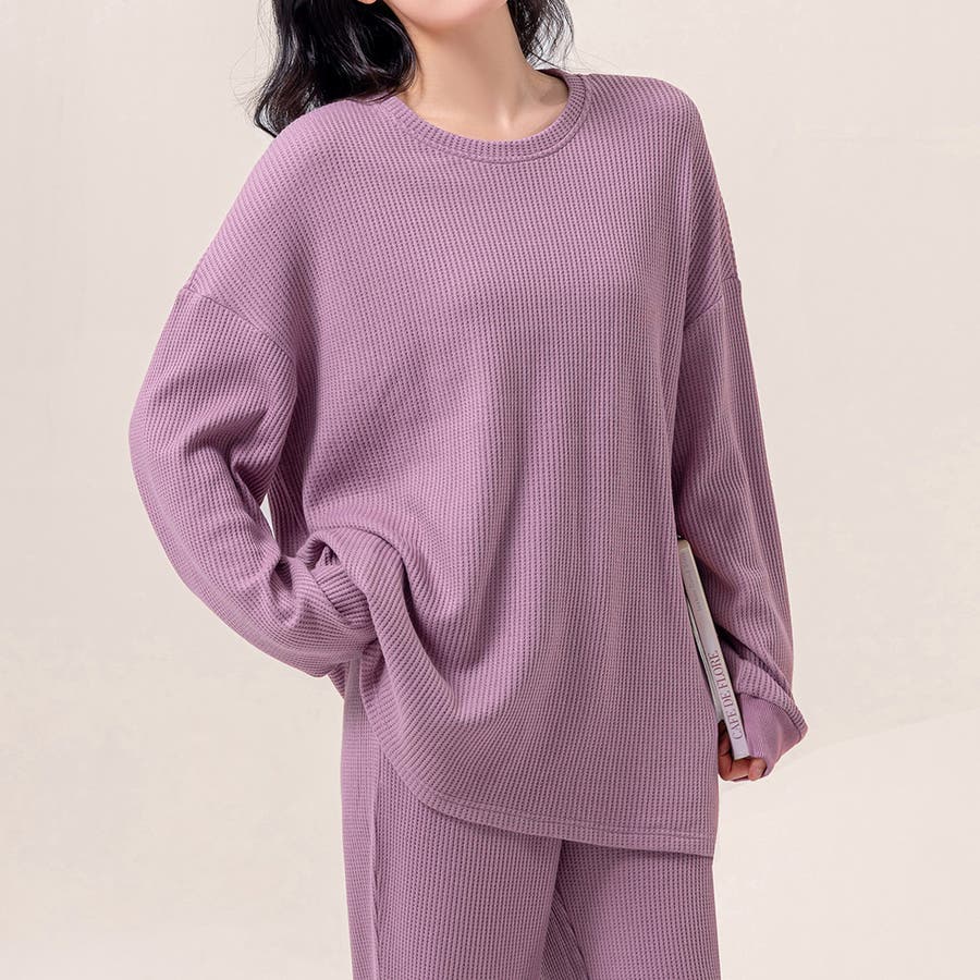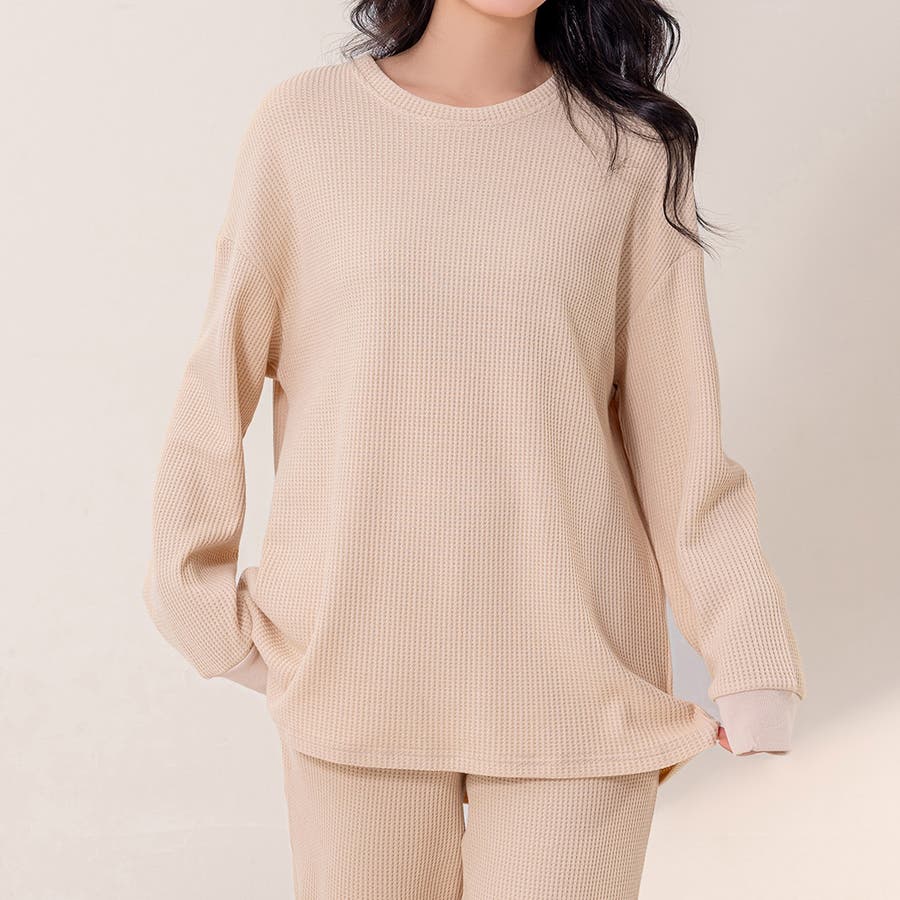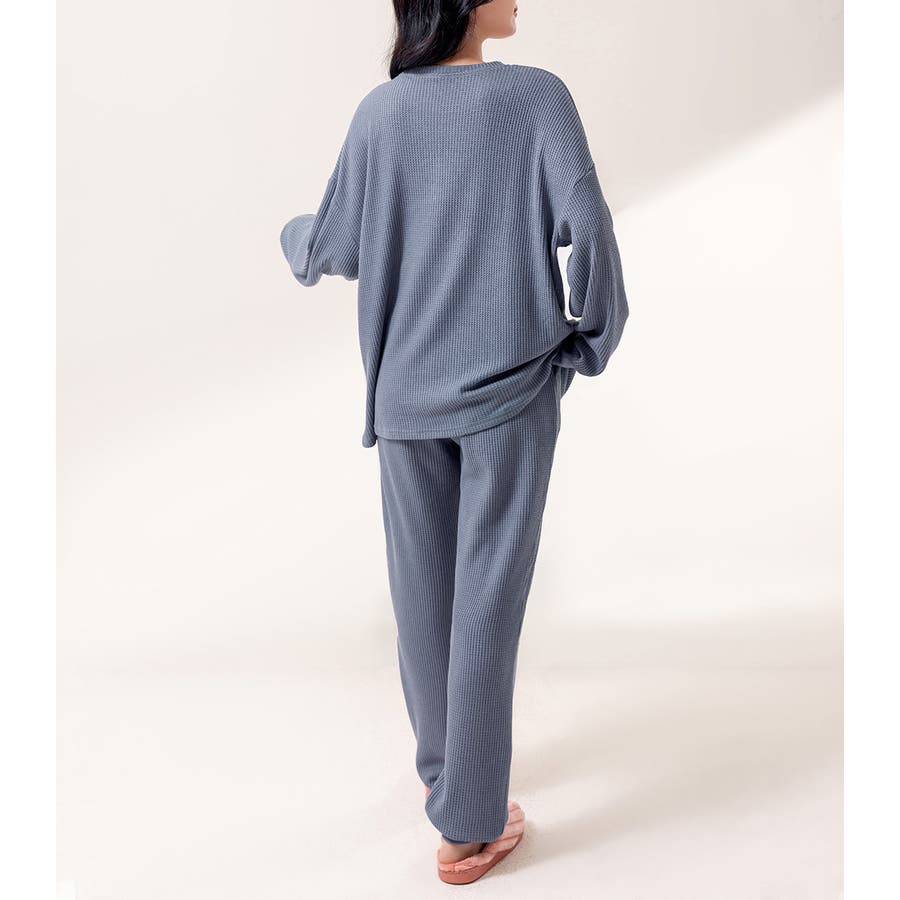 上下セットアップのワッフル生地ルームウェア。