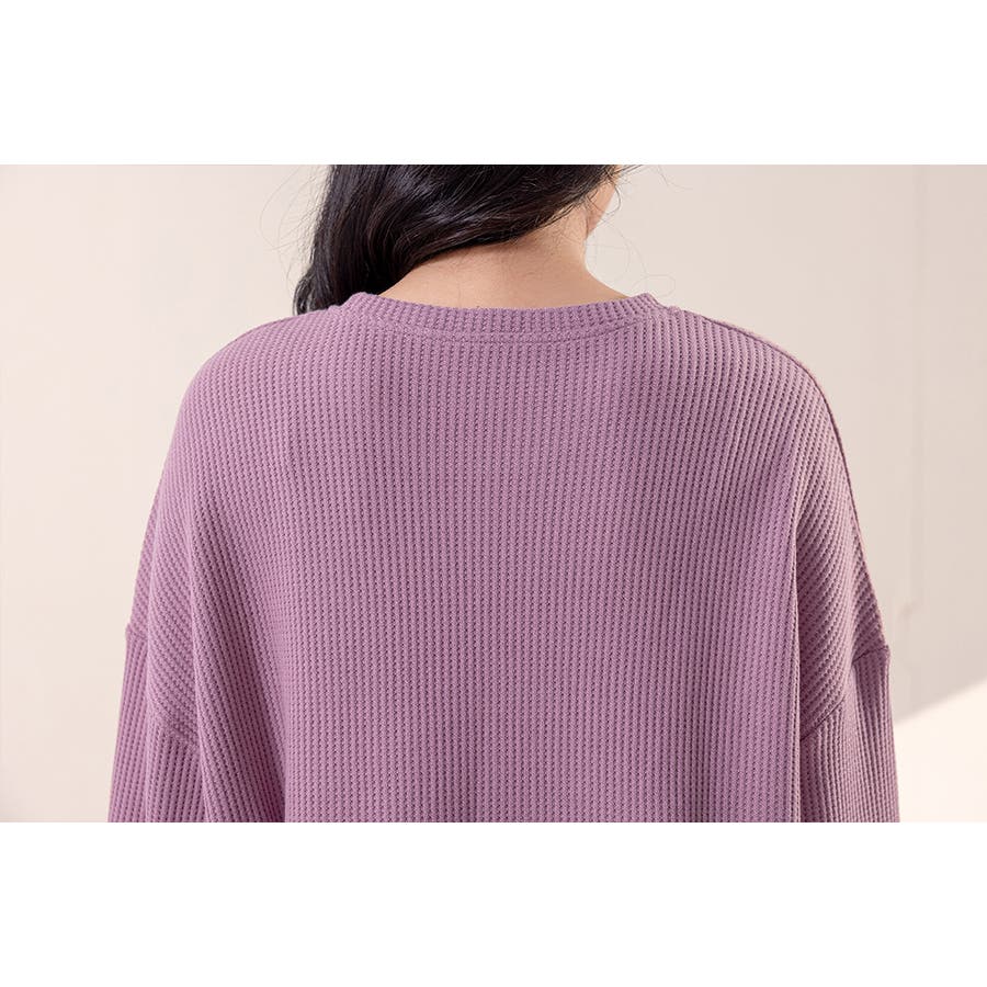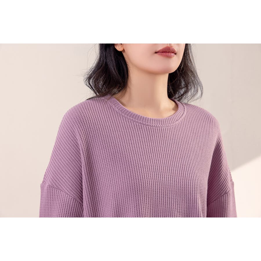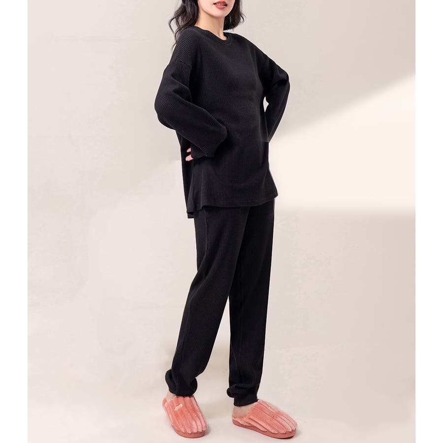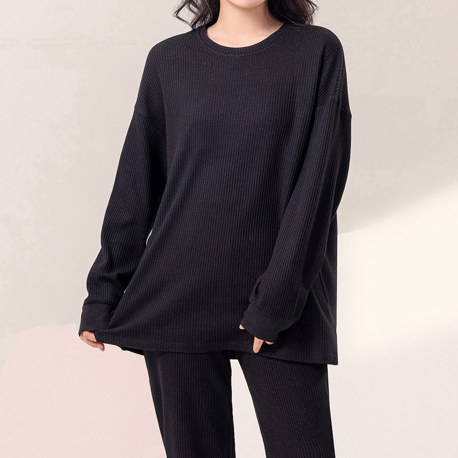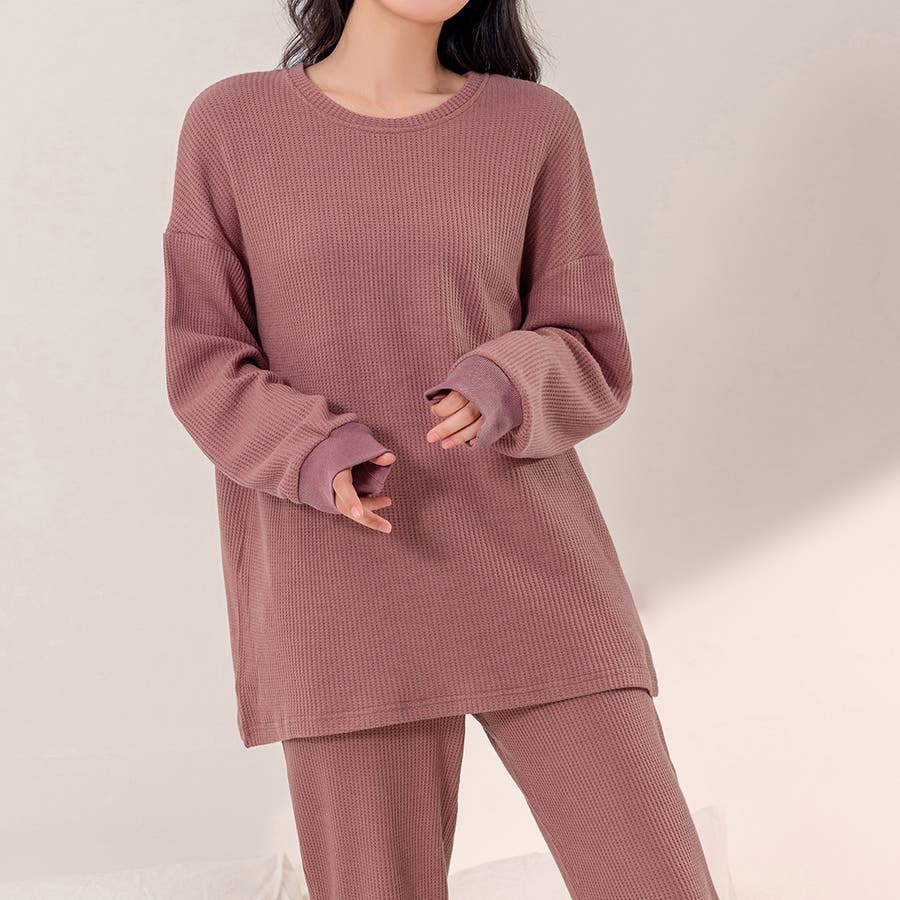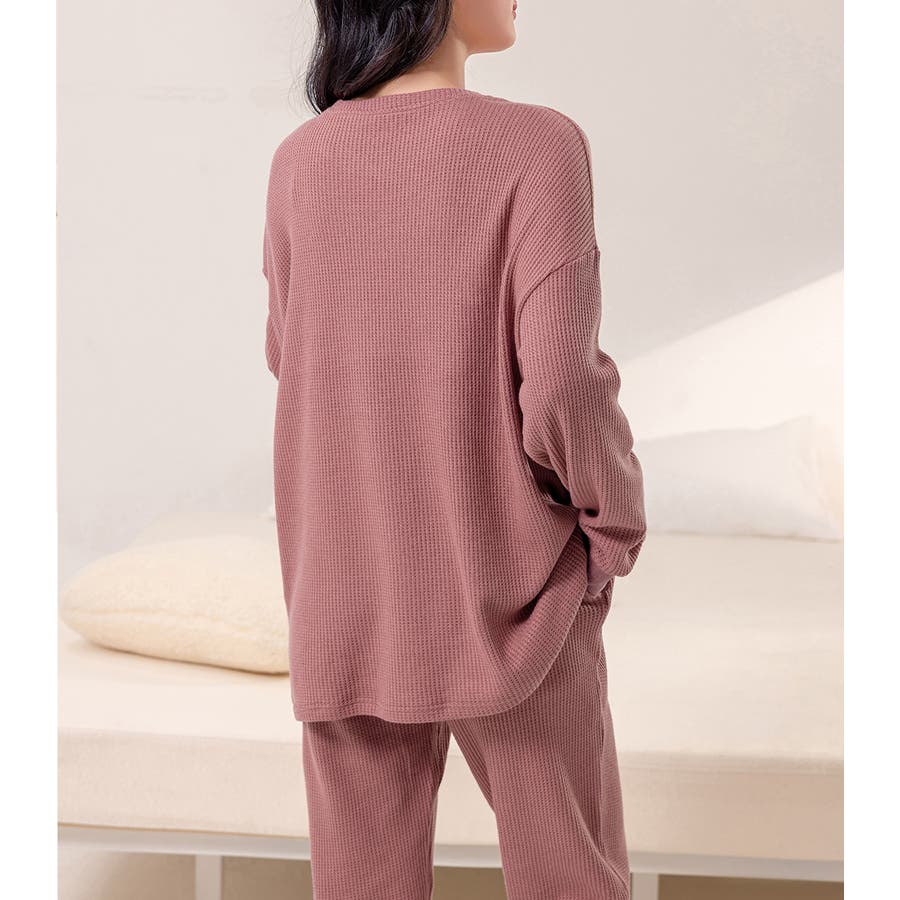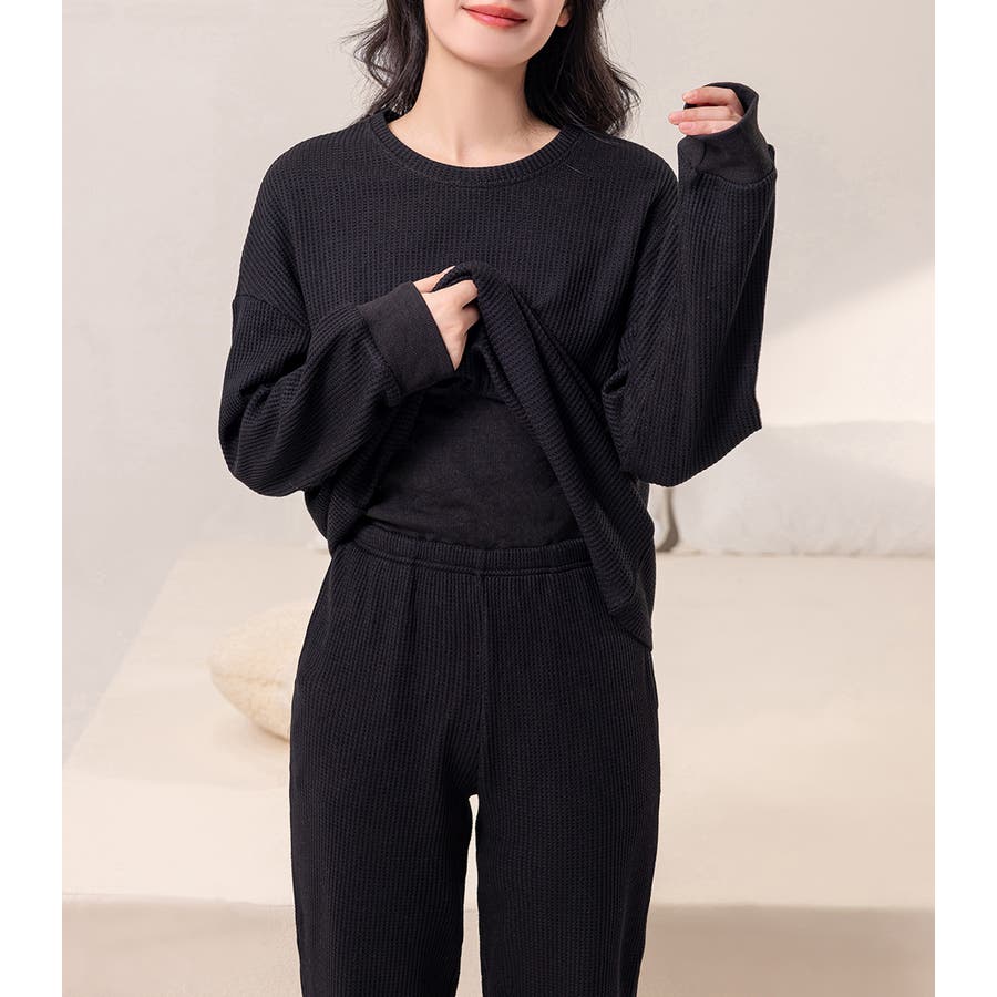 上下セットアップのワッフル生地ルームウェア。