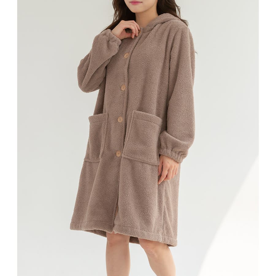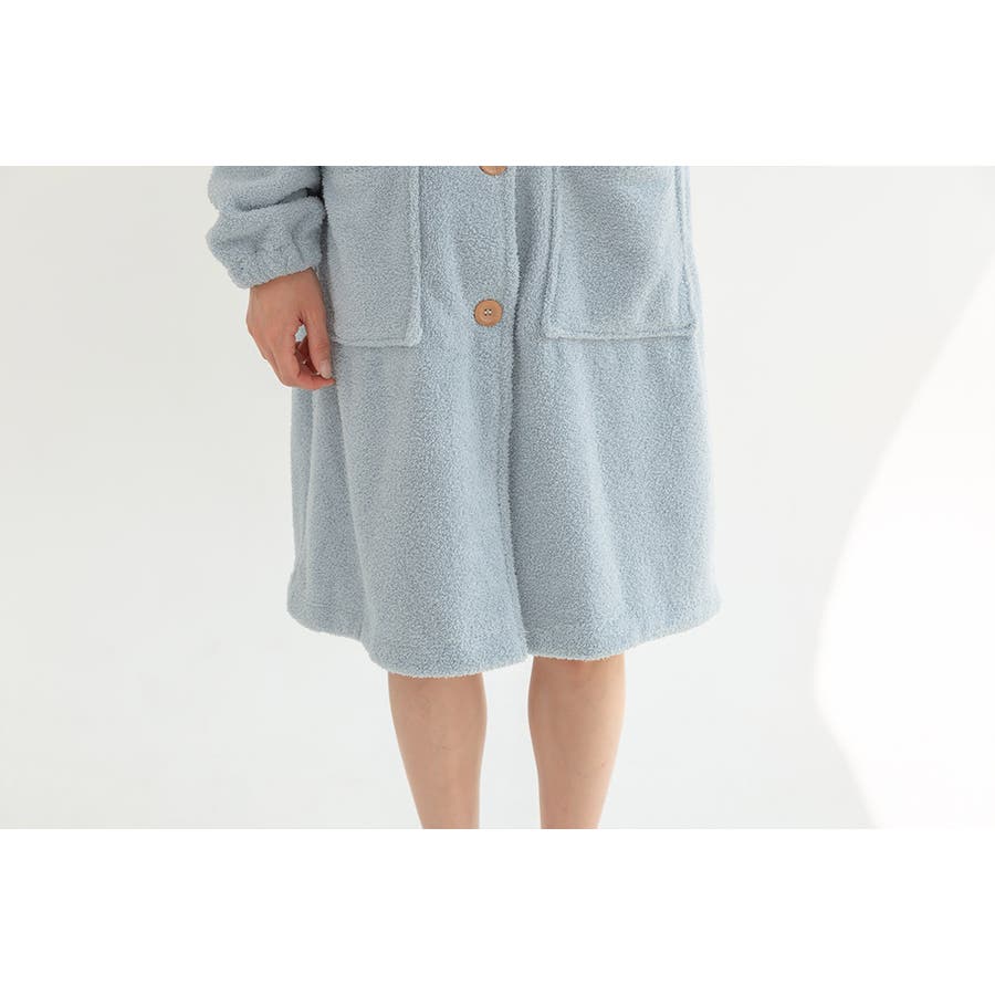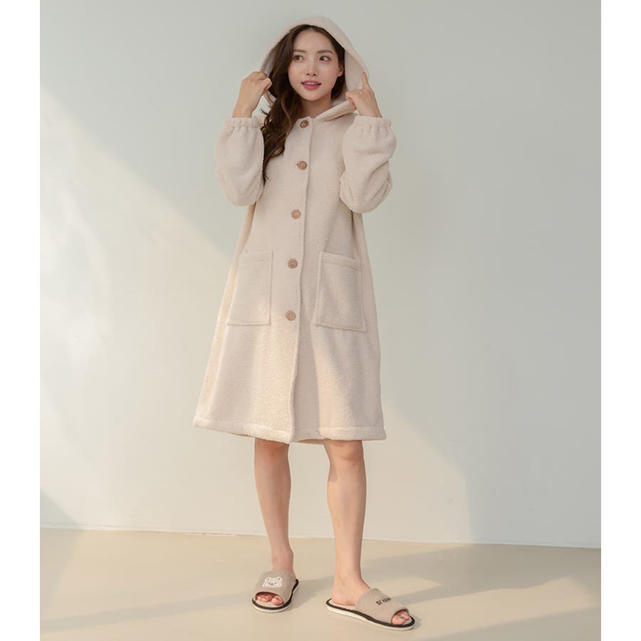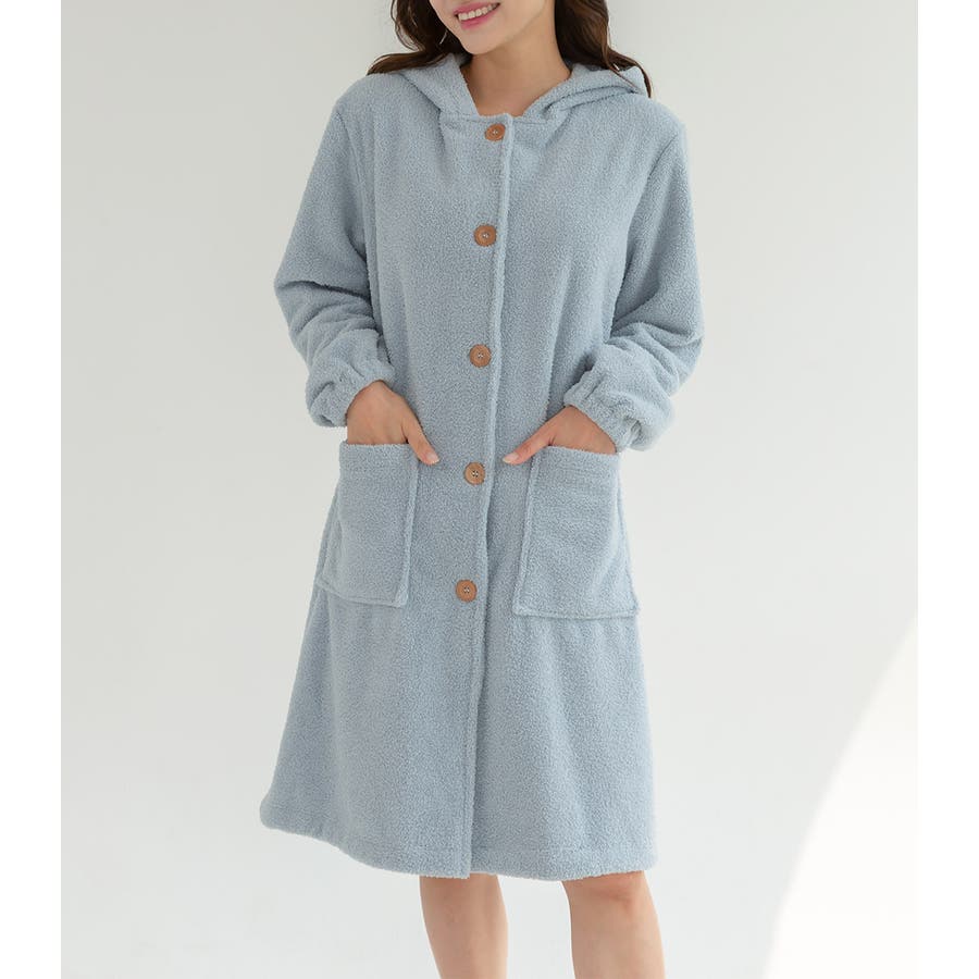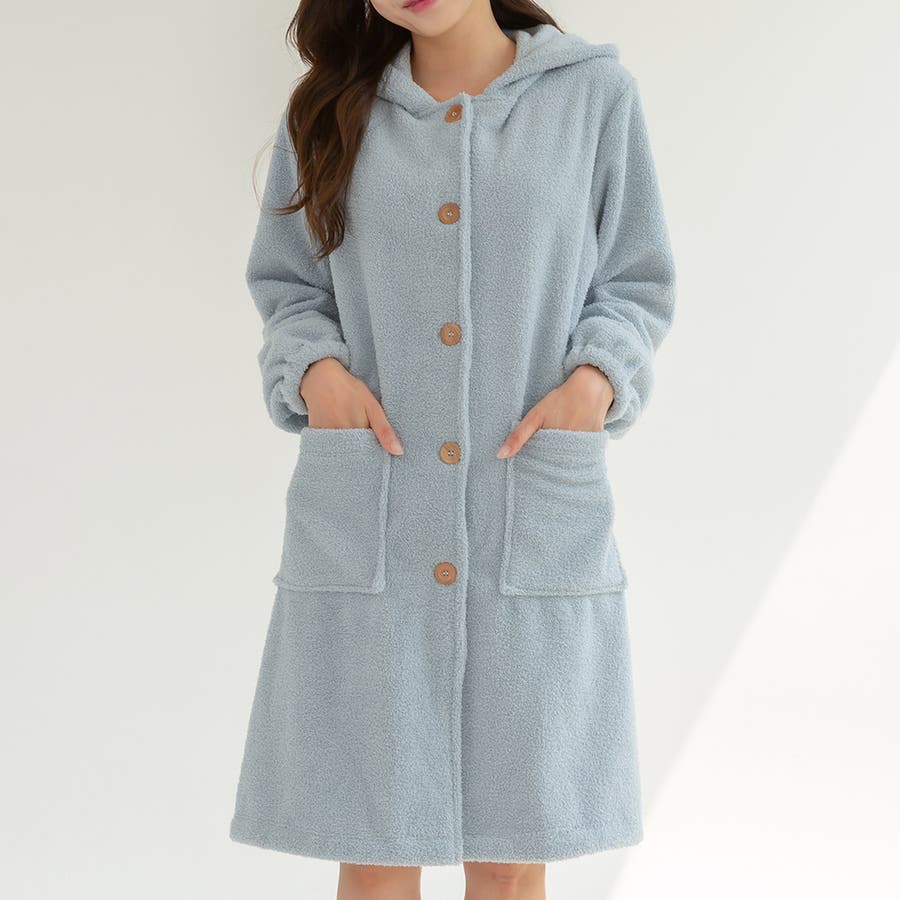 前開きボタンでさっと羽織るのにもぴったりなフード付きワンピース