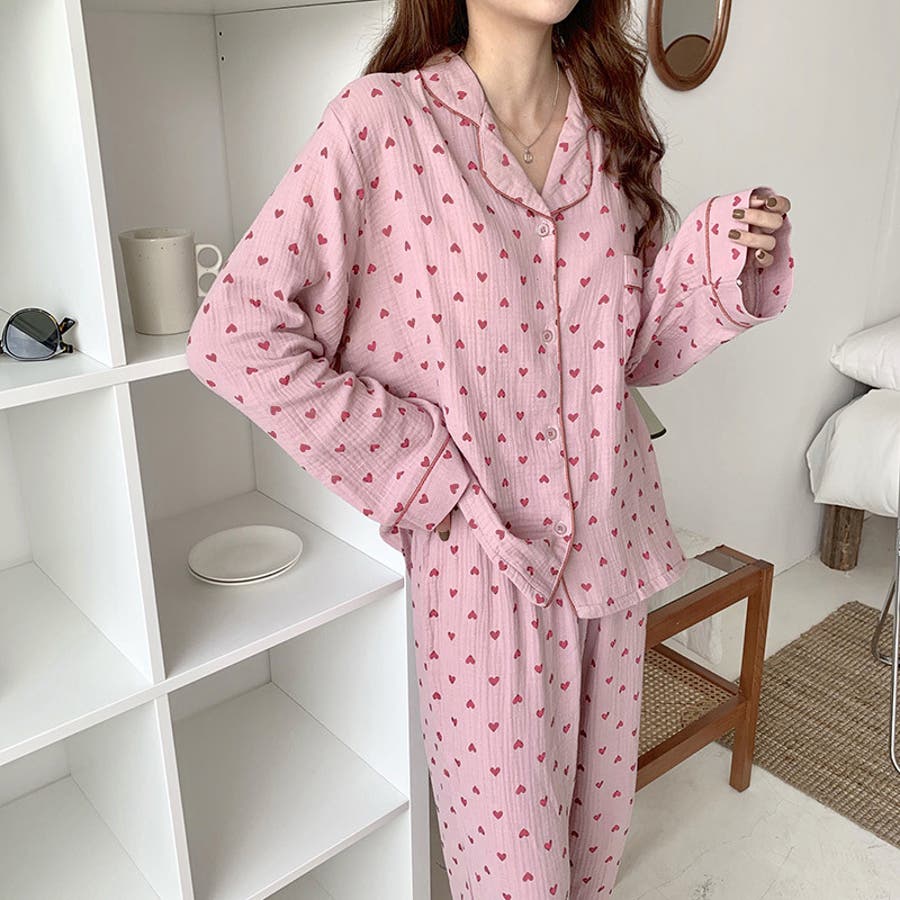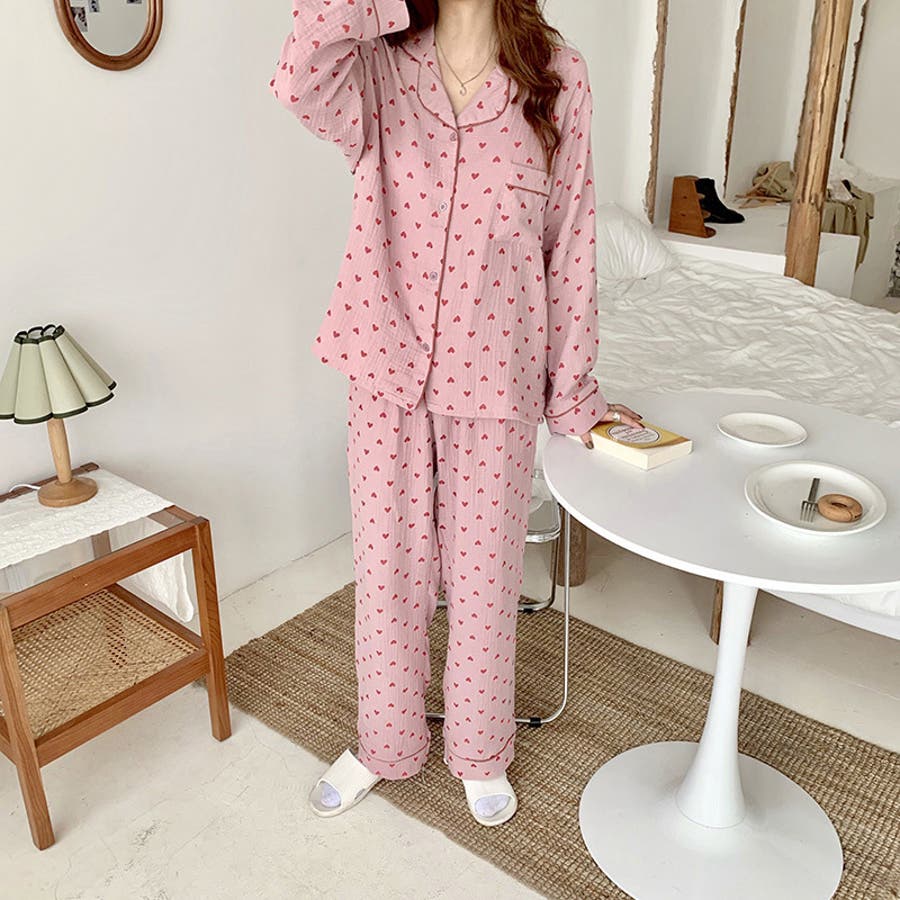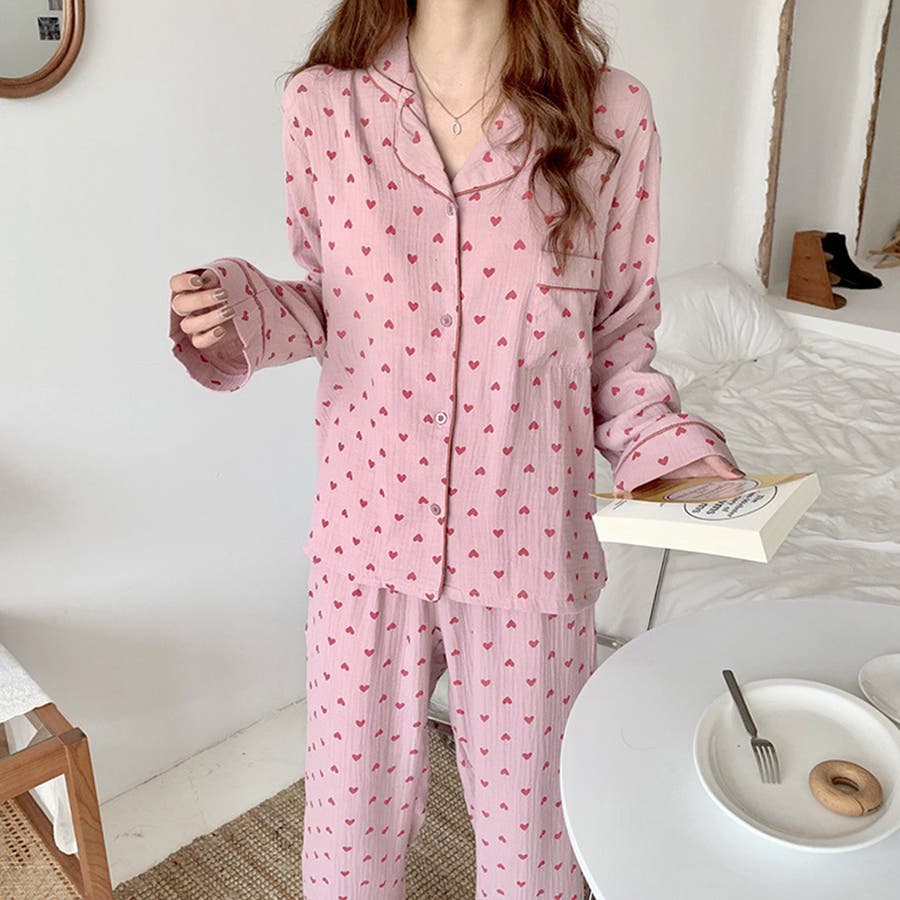 ハート柄が可愛い韓国っぽデザインのパジャマ