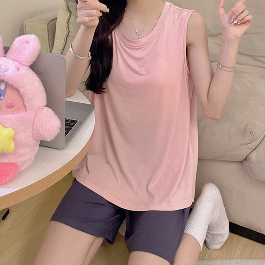 便利なパッド付きタンクトップ&ハーフパンツの2点セット