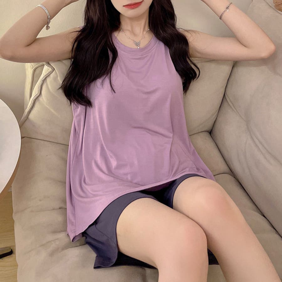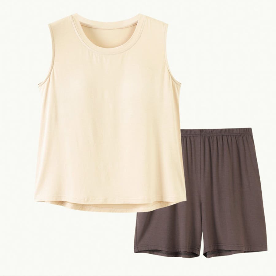 リラックスムード漂うパッド付タンクトップとハーフパンツの2点セット