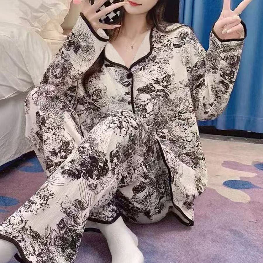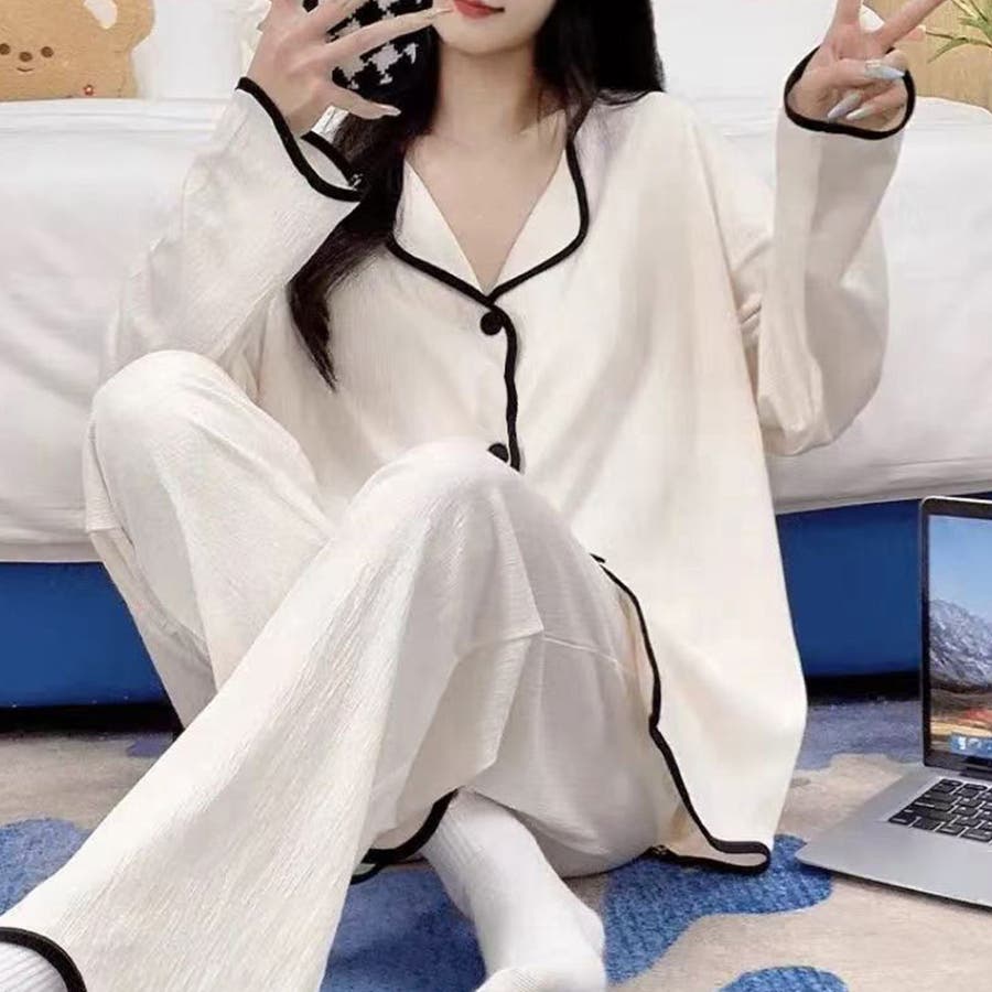 緩やかなメロウ風のパイピングが可愛いルームウェア。