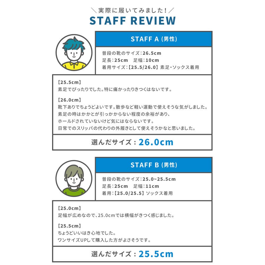 さん (40代 / 女性 )購入アイテム:サイズ 27.0cm(44)カラー F:グリーン×ボーダー足のサイズ:27.0cmサイズ感:ぴったり