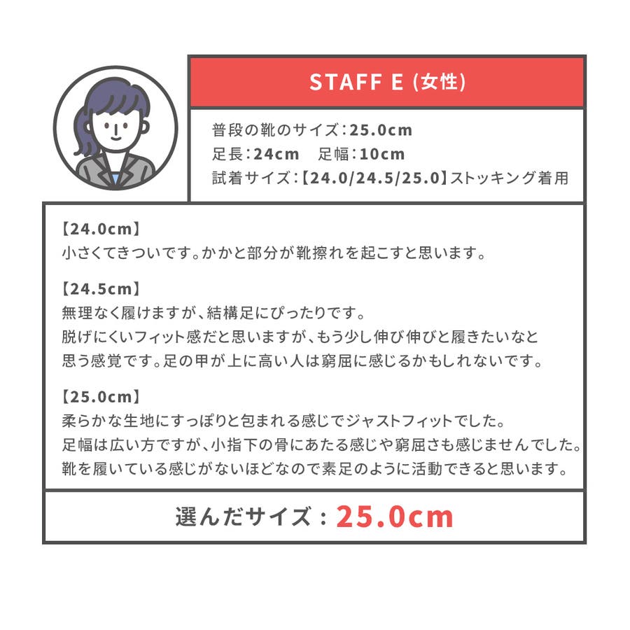 投稿日:2022.03.03さん (40代 / 女性 )購入アイテム:サイズ 23.5cm(37)カラー K:ブラック足のサイズ:23.5cmサイズ感:ぴったり - 履きやすい