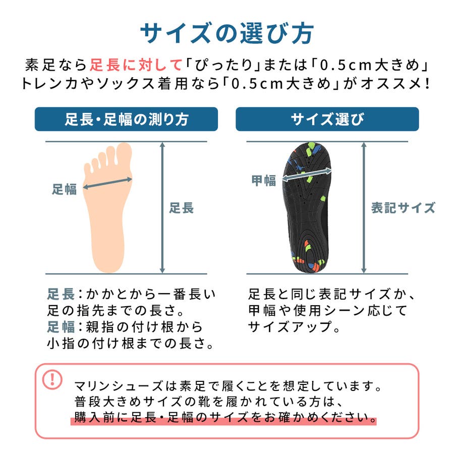 !マリンシューズは素足で履くことを想定しています。