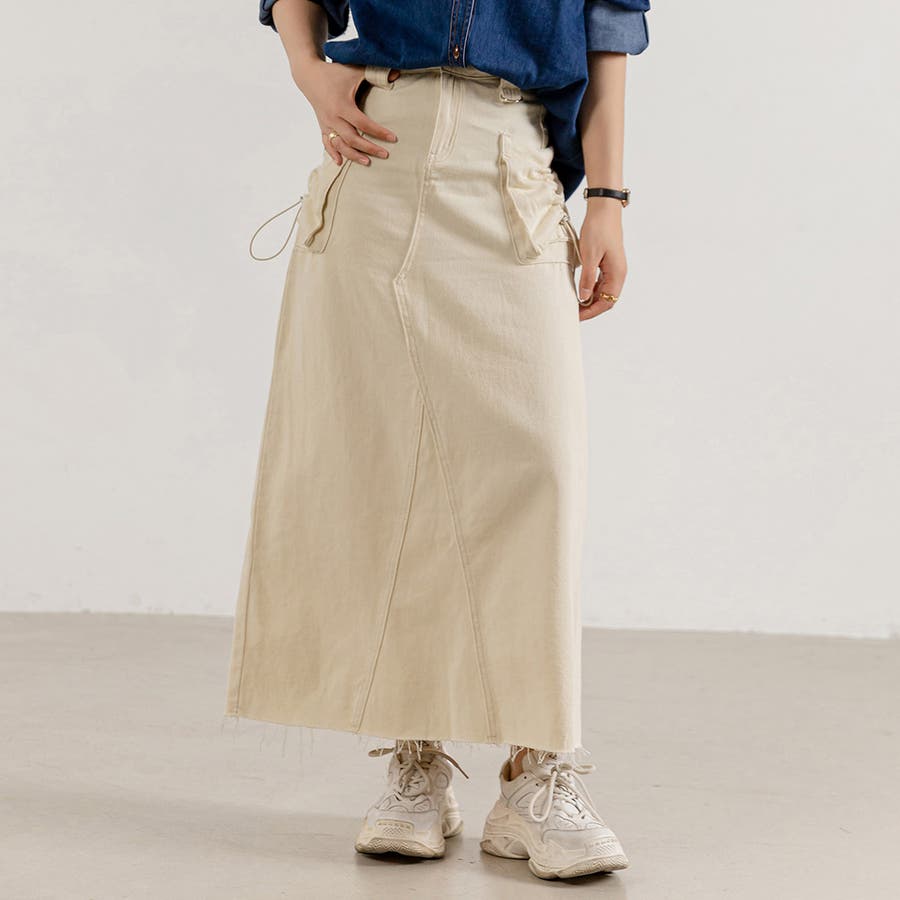 トレンドのミリタリーテイストのロングカーゴスカート。