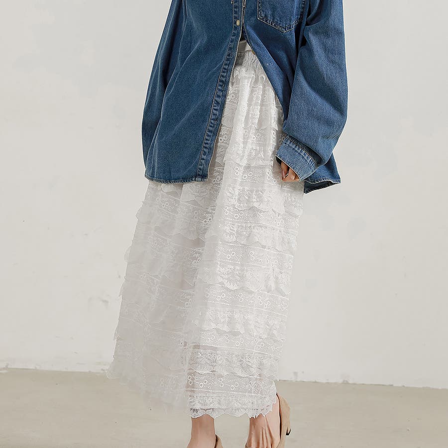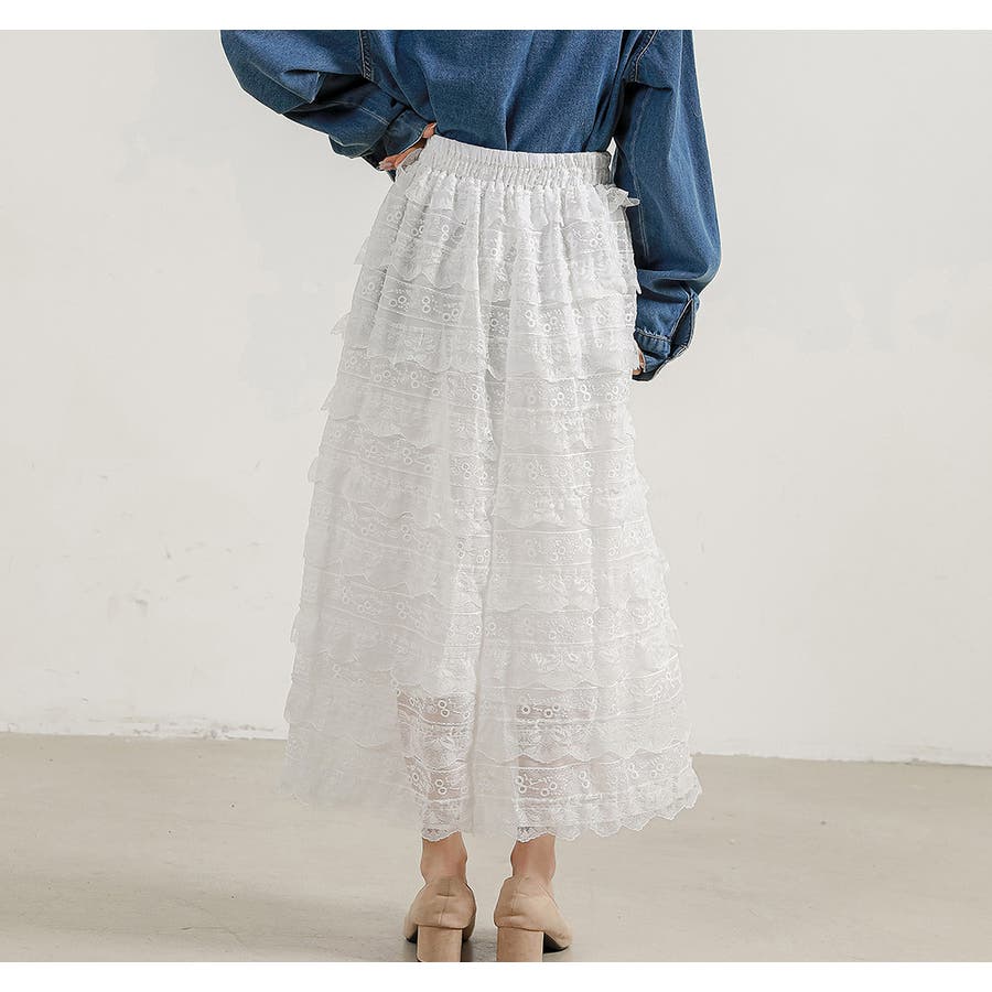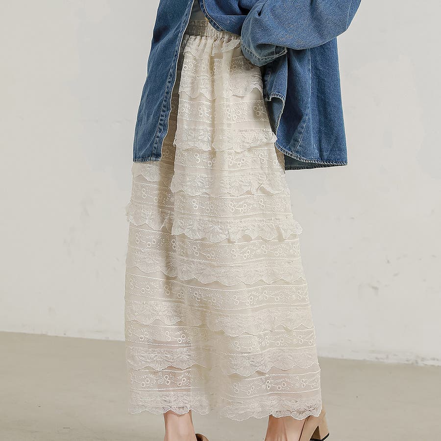 華やかなレース刺繍入りのティアードスカート