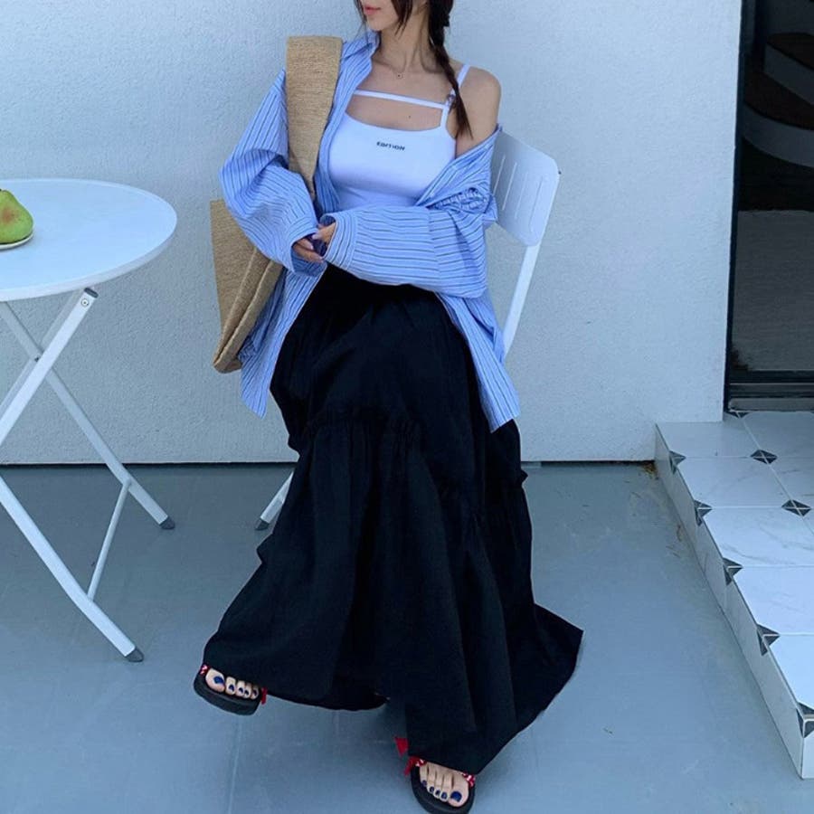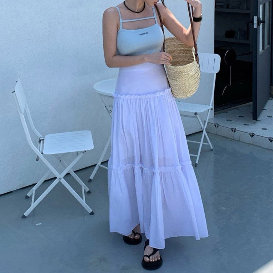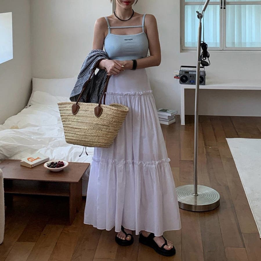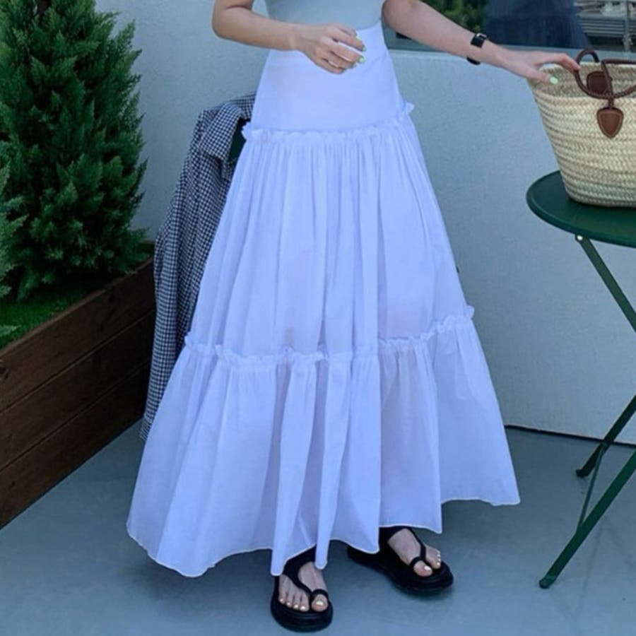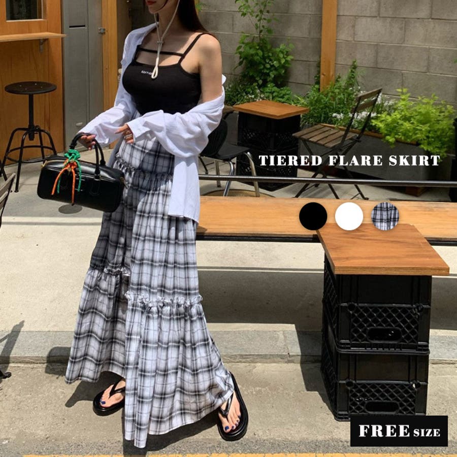 ティアード切り替えでふんわり広がるフェミニンなスカート