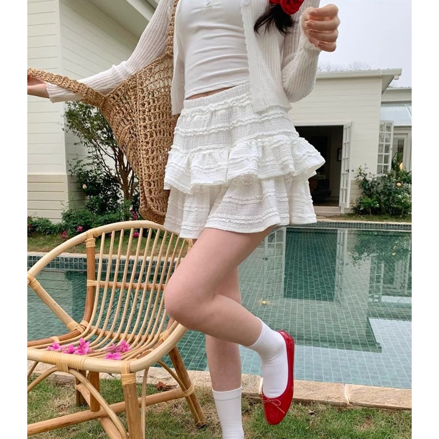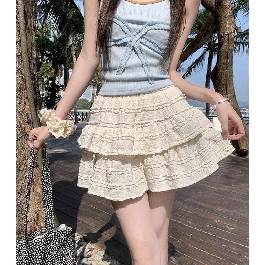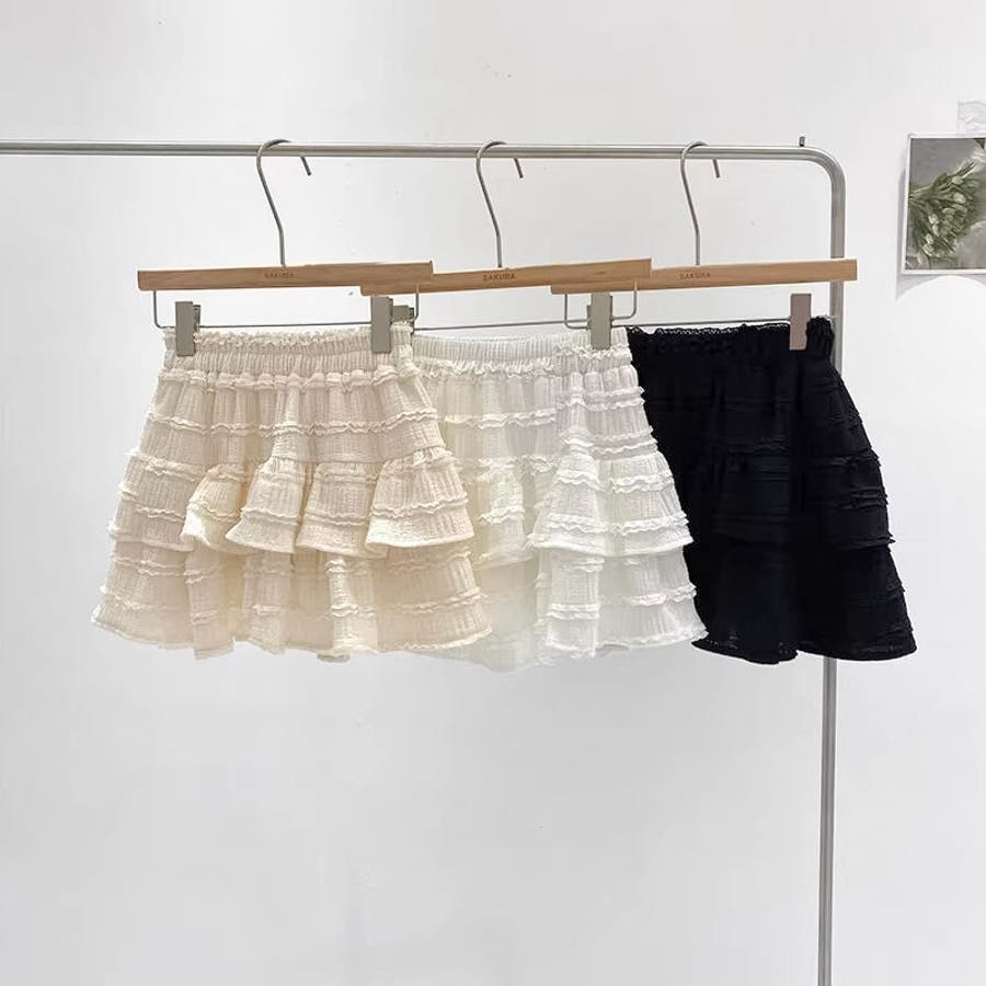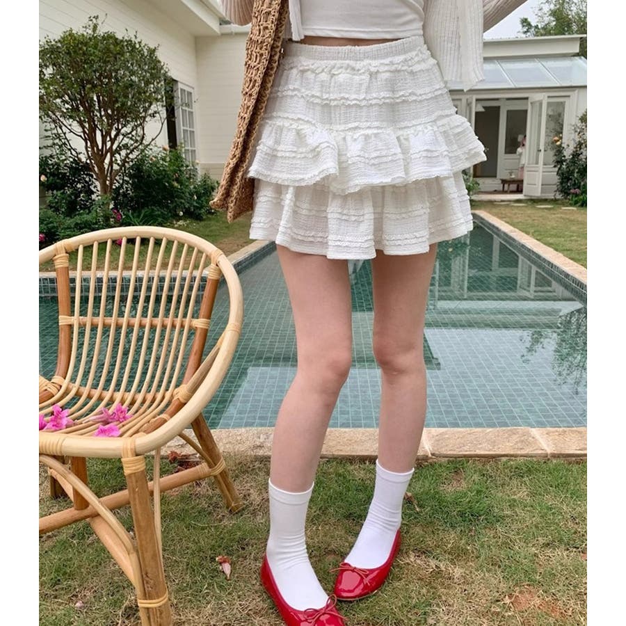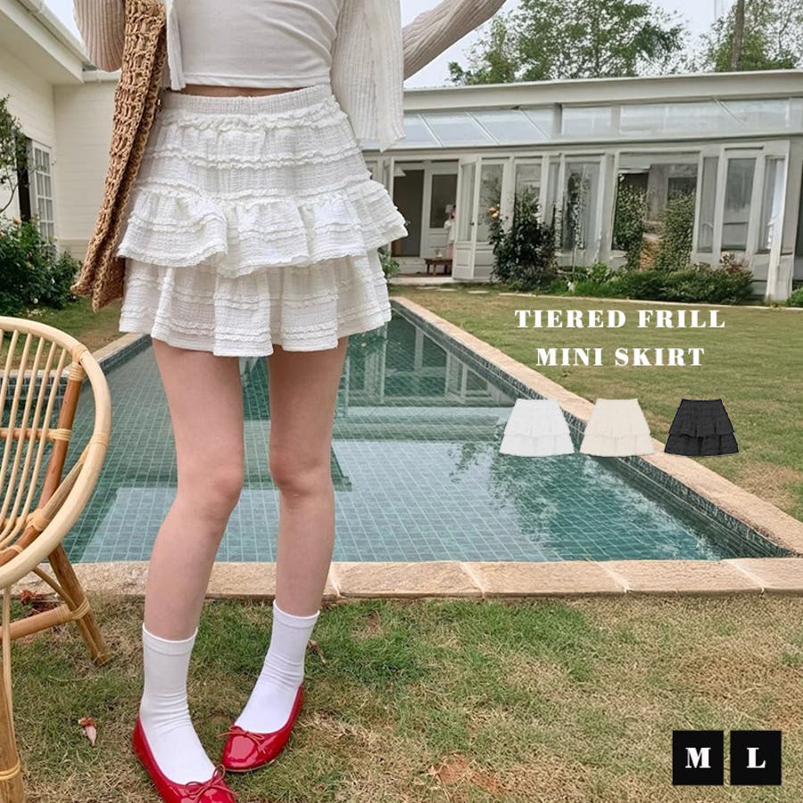 レースフリルがとっても可愛いティアードミニスカートが登場。