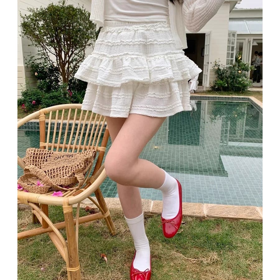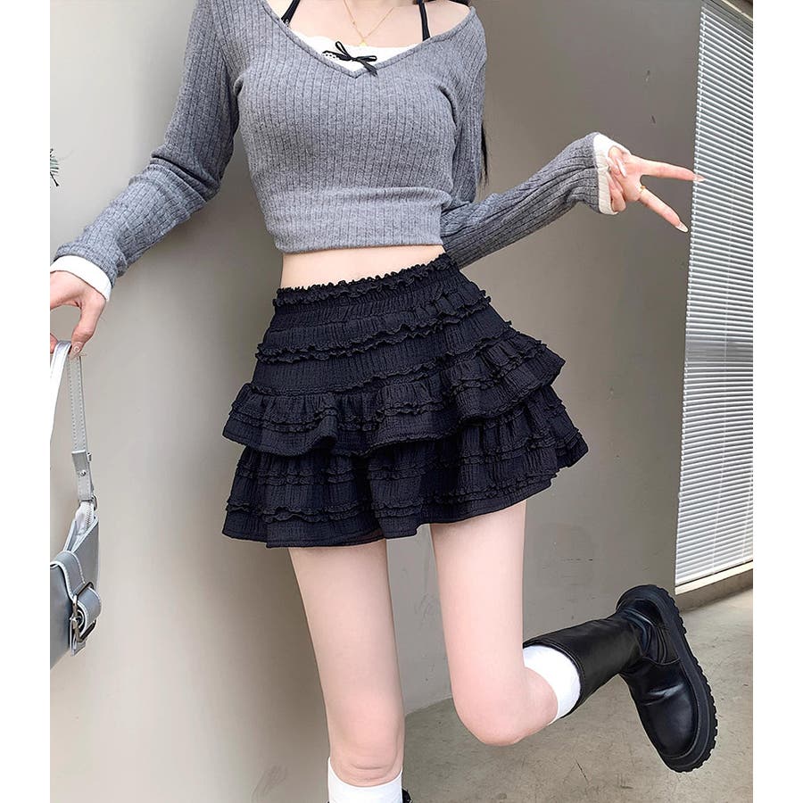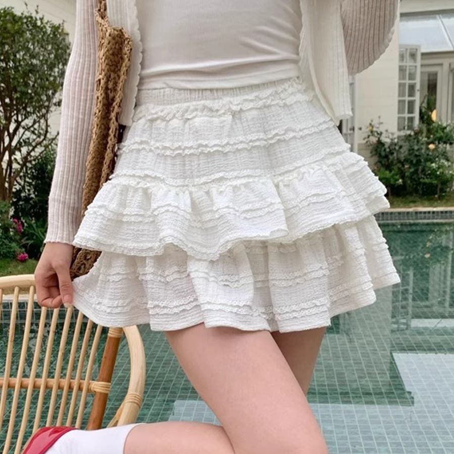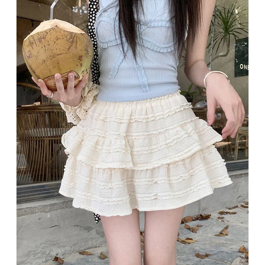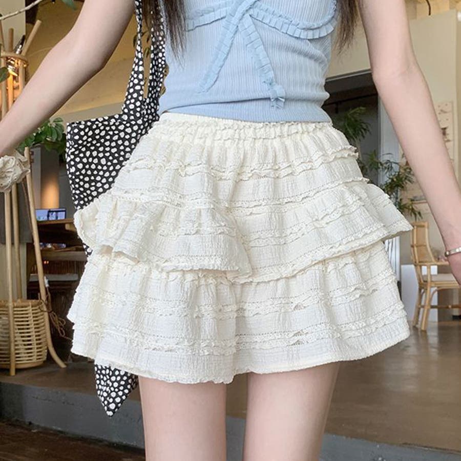 レースフリルがとっても可愛いティアードミニスカートが登場。