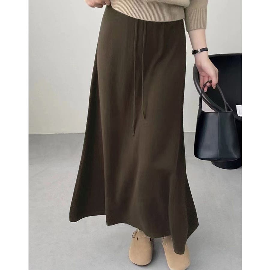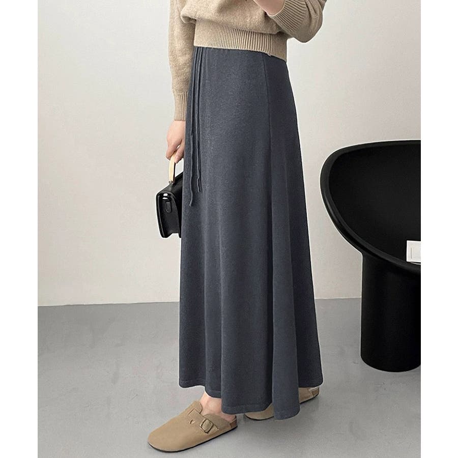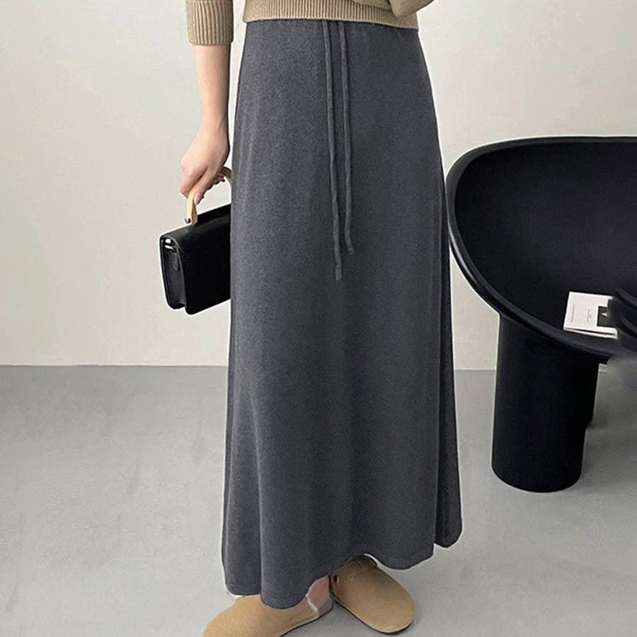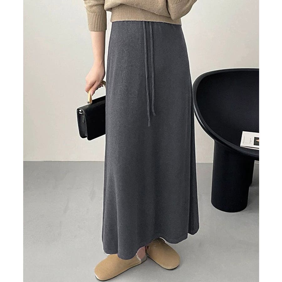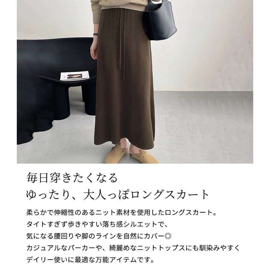 柔らかで伸縮性のあるニット素材を使用したロングスカート。