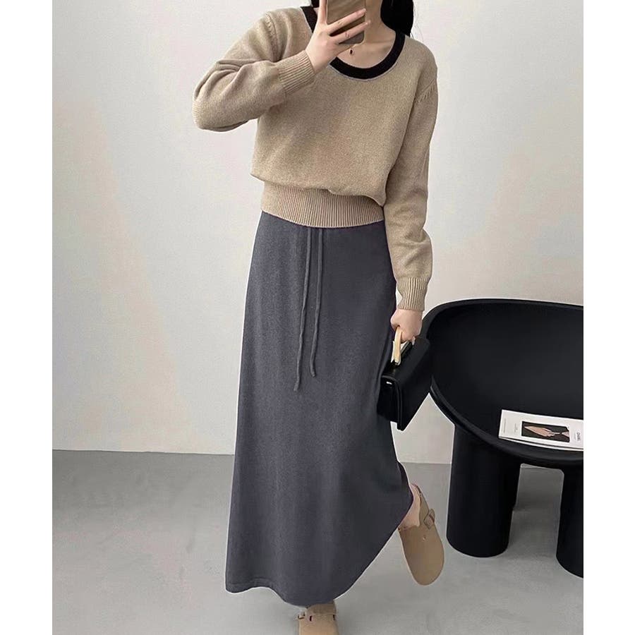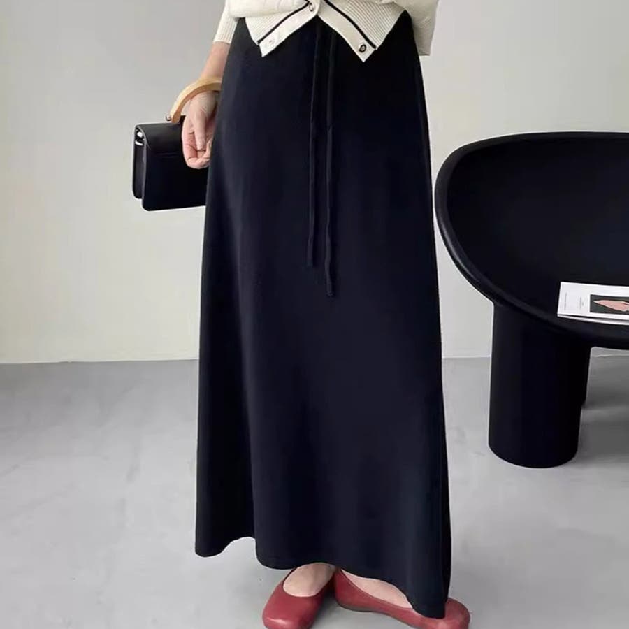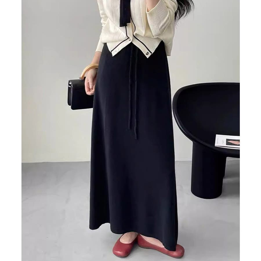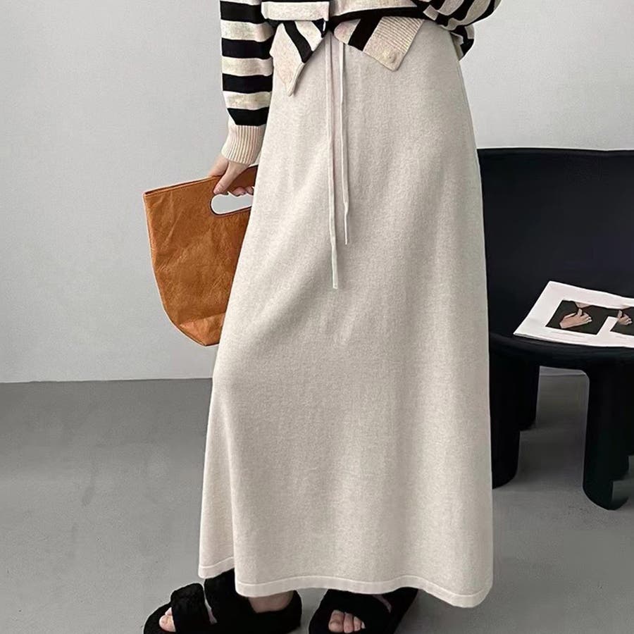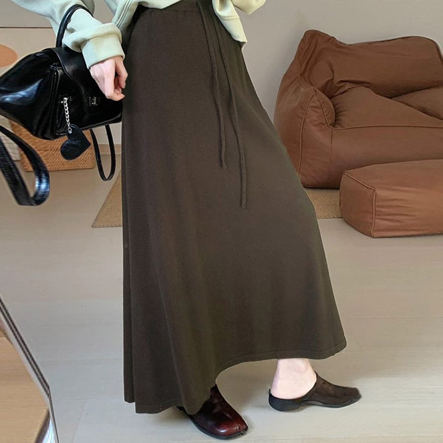 柔らかで伸縮性のあるニット素材を使用したロングスカート。
