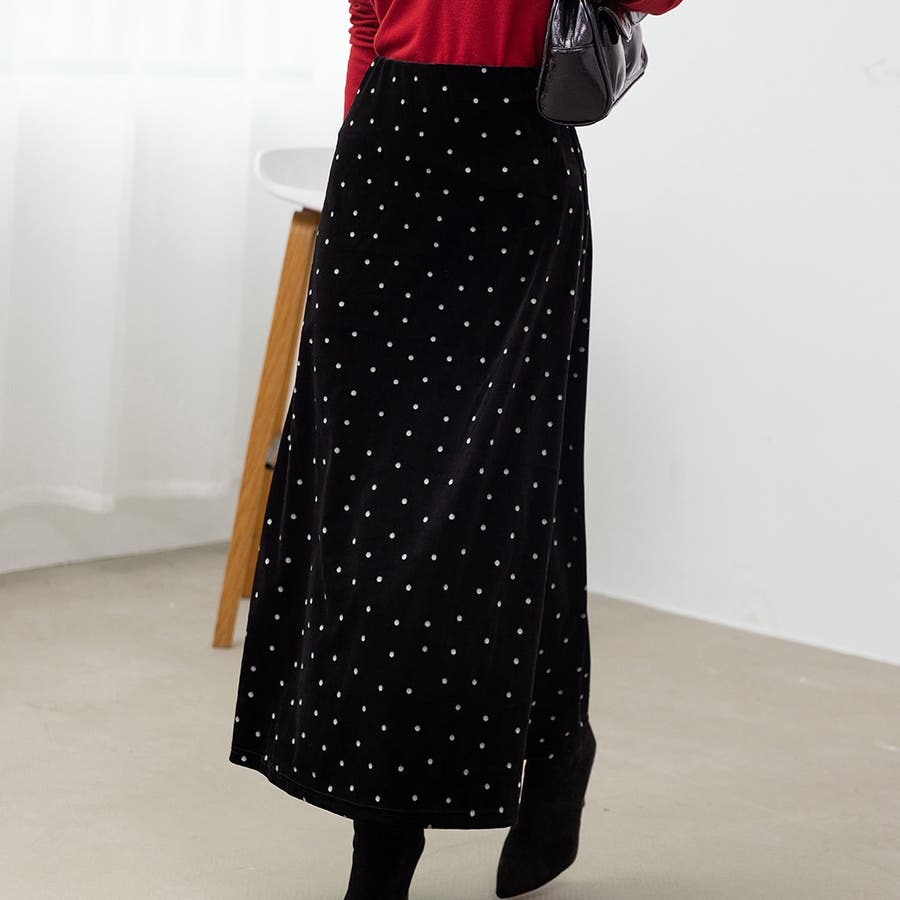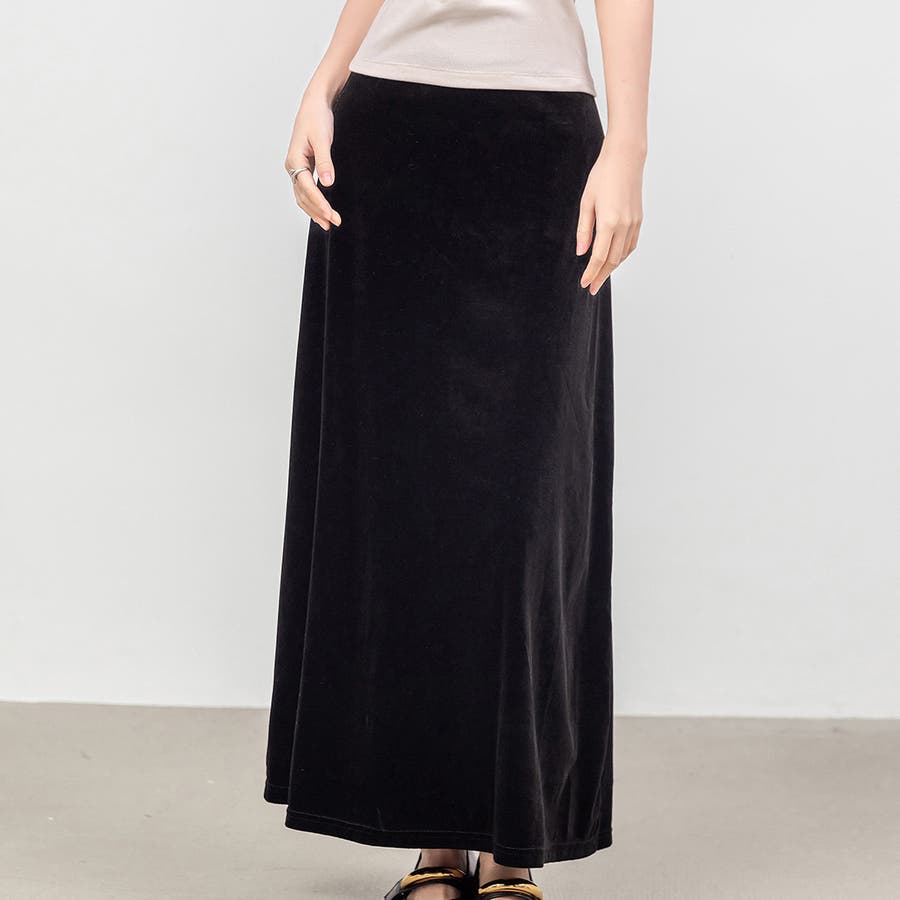 柔らかな光沢が美しいベロア生地を使用したロング丈のAラインスカート。