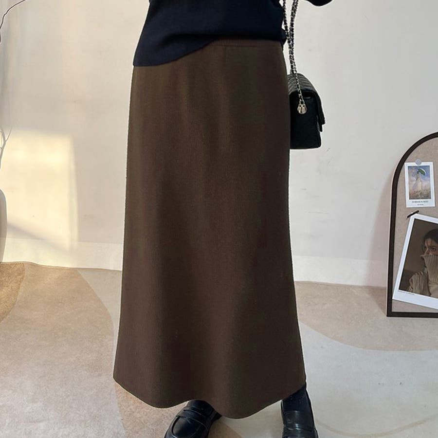 脚のラインを拾いすぎず美しいシルエットを演出し、ふわふわ裏シャギーでぬくもりを感じるスカート。