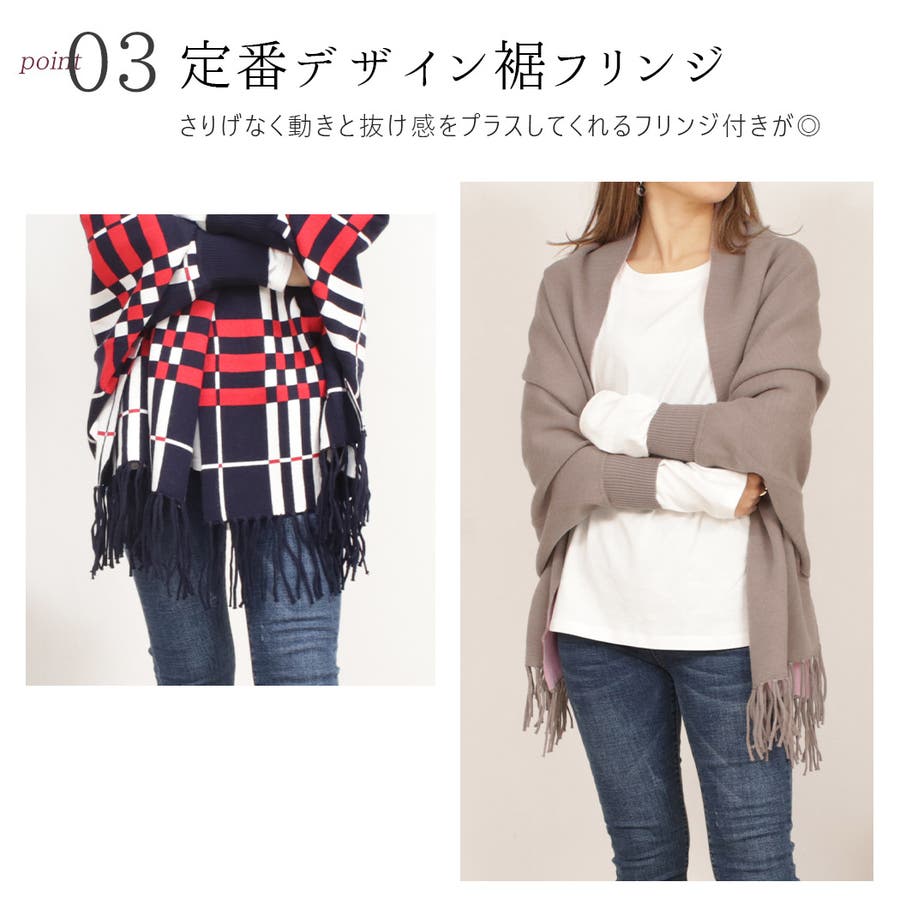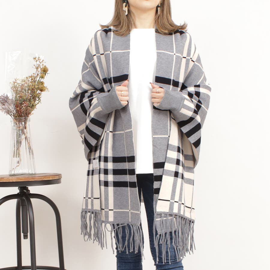 カーディガンタイプのストール探していましたまさしく私の希望が全然入った商品見つけてしまいました買われたレビューがみんな良かったので心配はなかったですが実際商品届いたら生地感もしっかりしていてチェックも素敵でした袖があるから落ちる事もなくやっぱり買ってとても満足しています