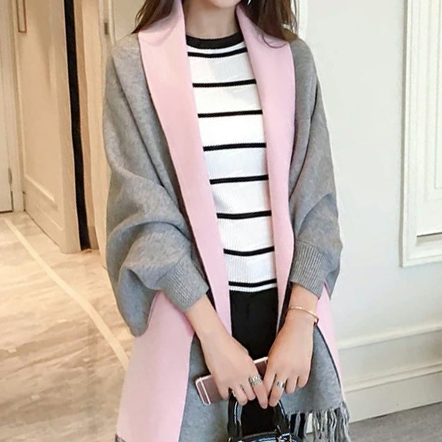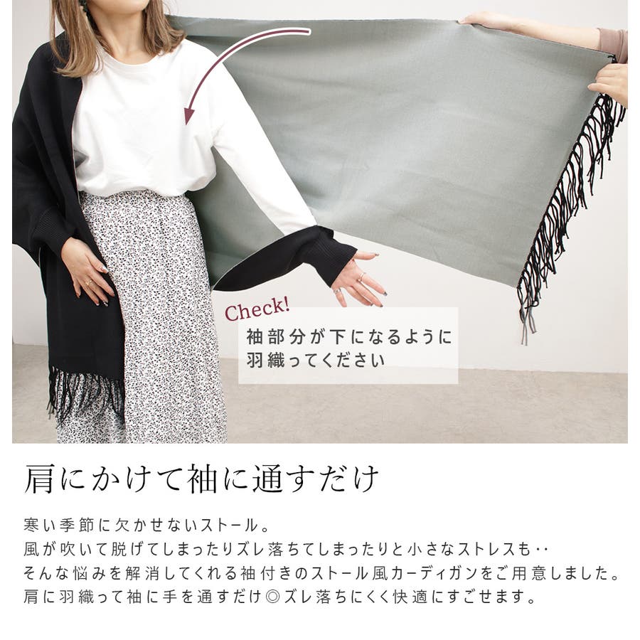 そんな悩みを解決してくれる袖付きのストール風カーディガンをご用意しました。