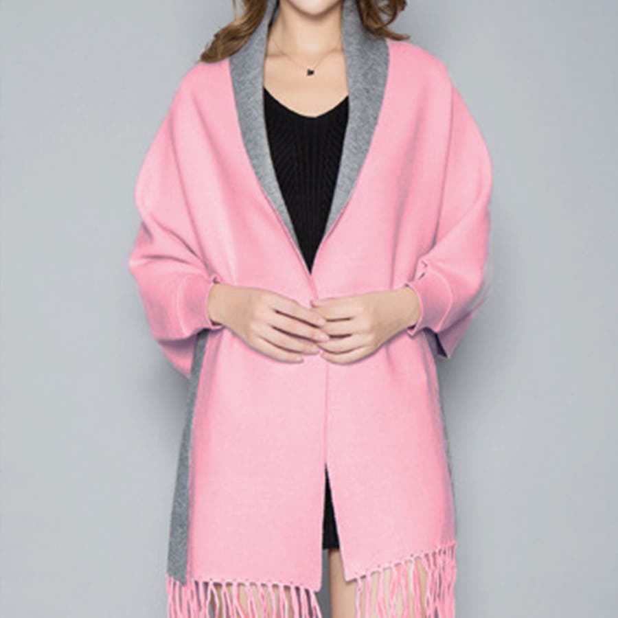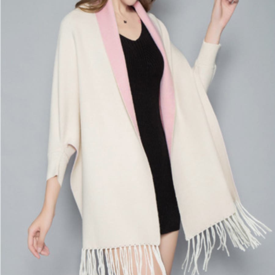 投稿日:2022.11.24袖を、通すストールだから、落ちてこないし、厚みもあるから暖かいし良いです。フリンジもめちゃくちゃカワイイ。リバーシブルだから折ったりしてもカワイイ。