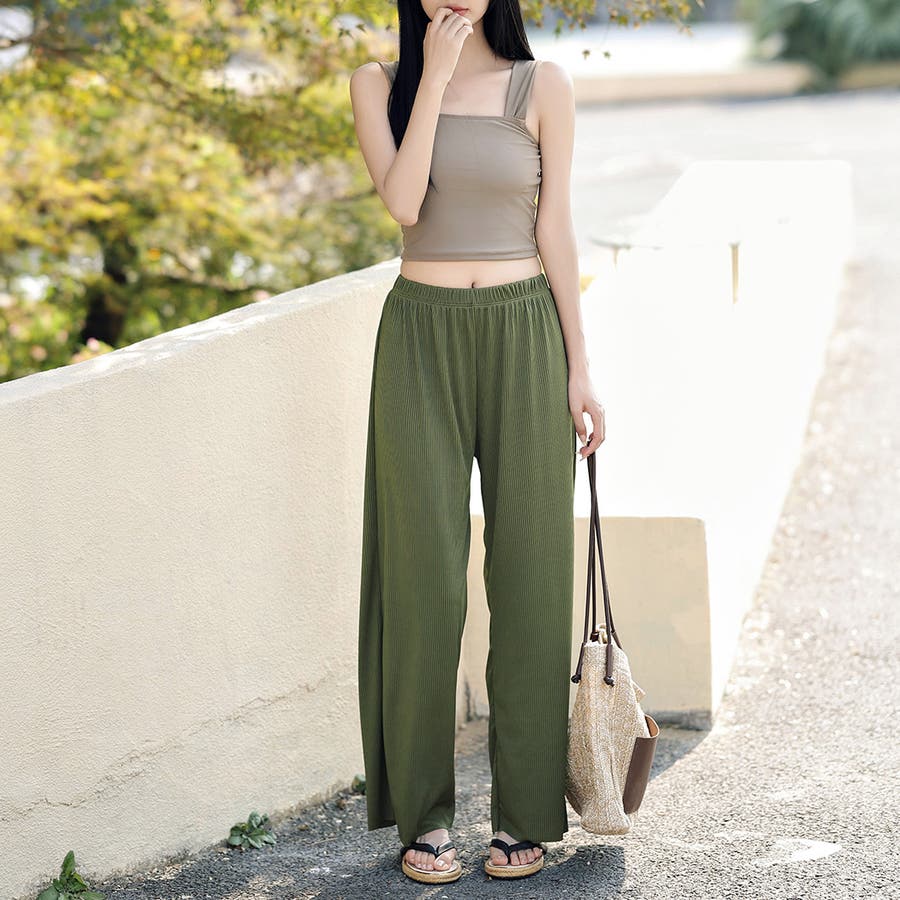 リブの縦ラインで脚をスラっとキレイに見せてくれる。